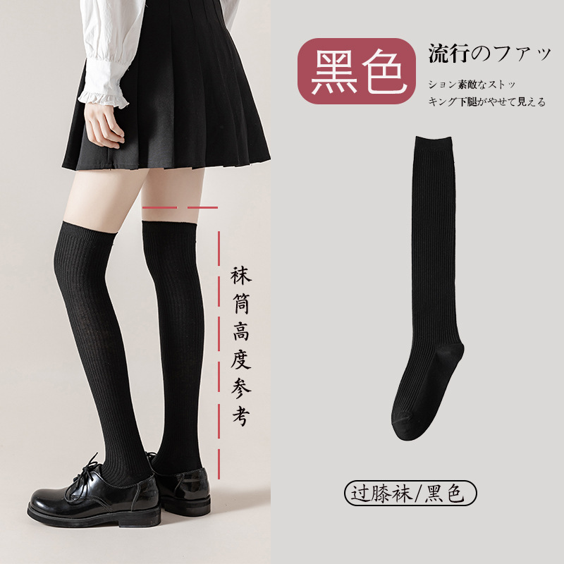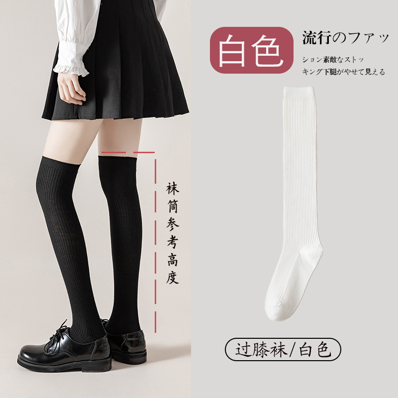 여성용 봄가을 중목 양말 스트라이프 여성 양말 컬리지 스타일 이중 바늘 종아리 양말 일본식 흑백 롱 양말 무릎 위 양말 보트 양말