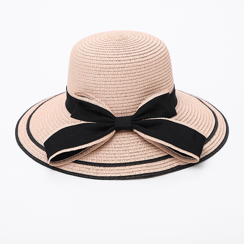 • 더블 블랙 엣지 리본 빅 챙 밀짚모자 - 핑크