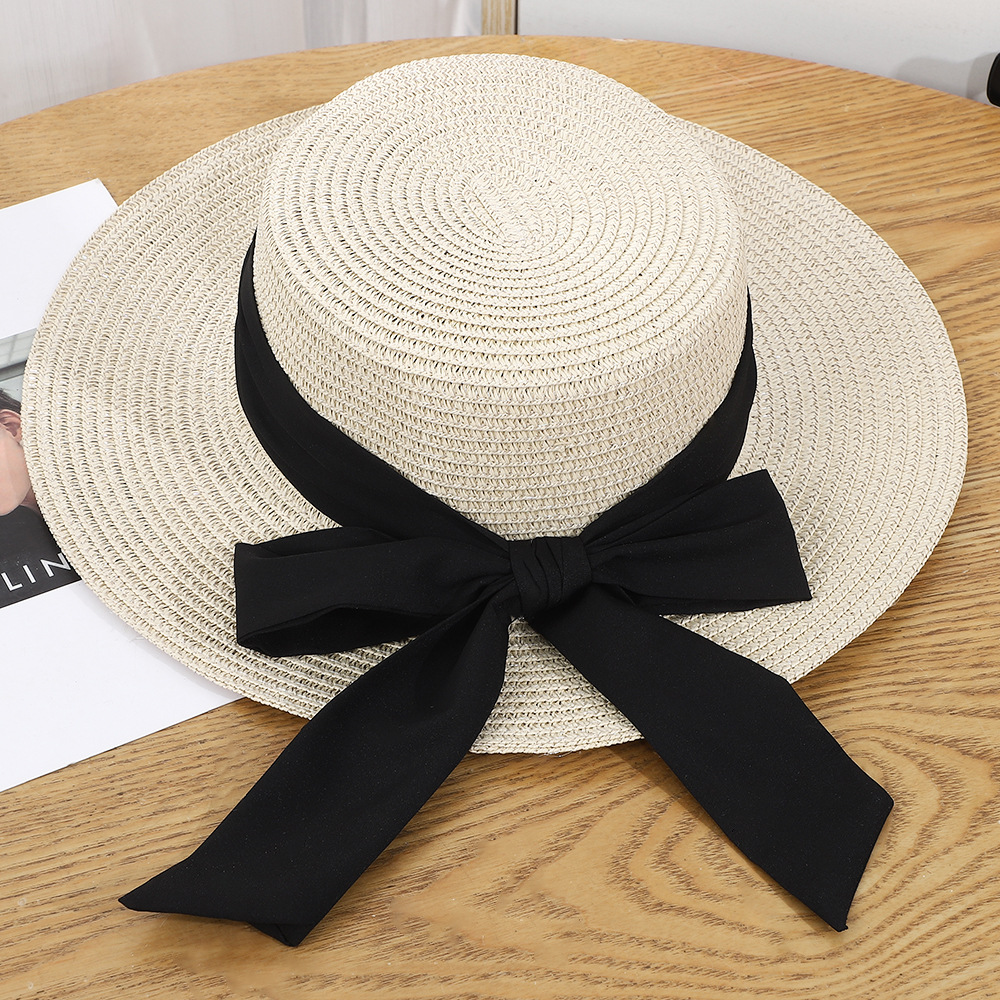 • 평챙 리본 밀짚모자 - 베이지