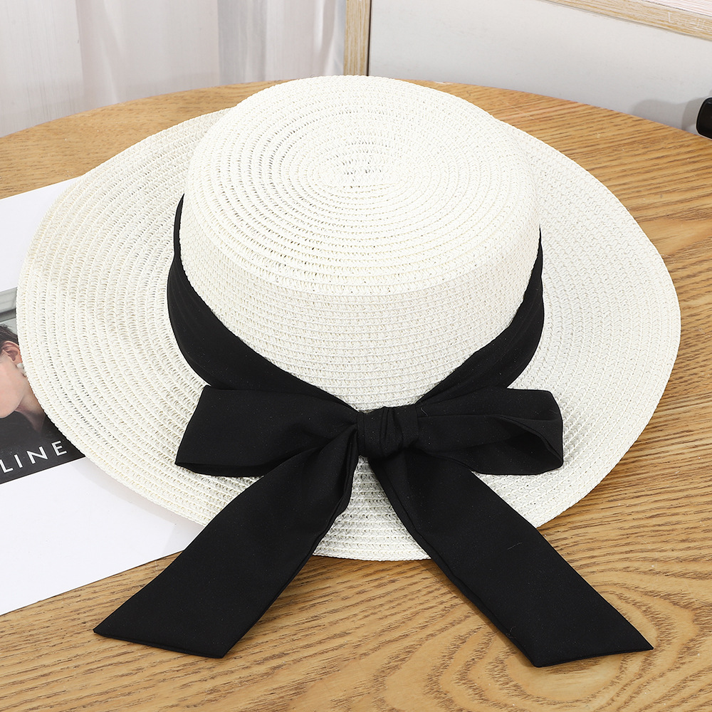 • 평챙 리본 밀짚모자 - 화이트