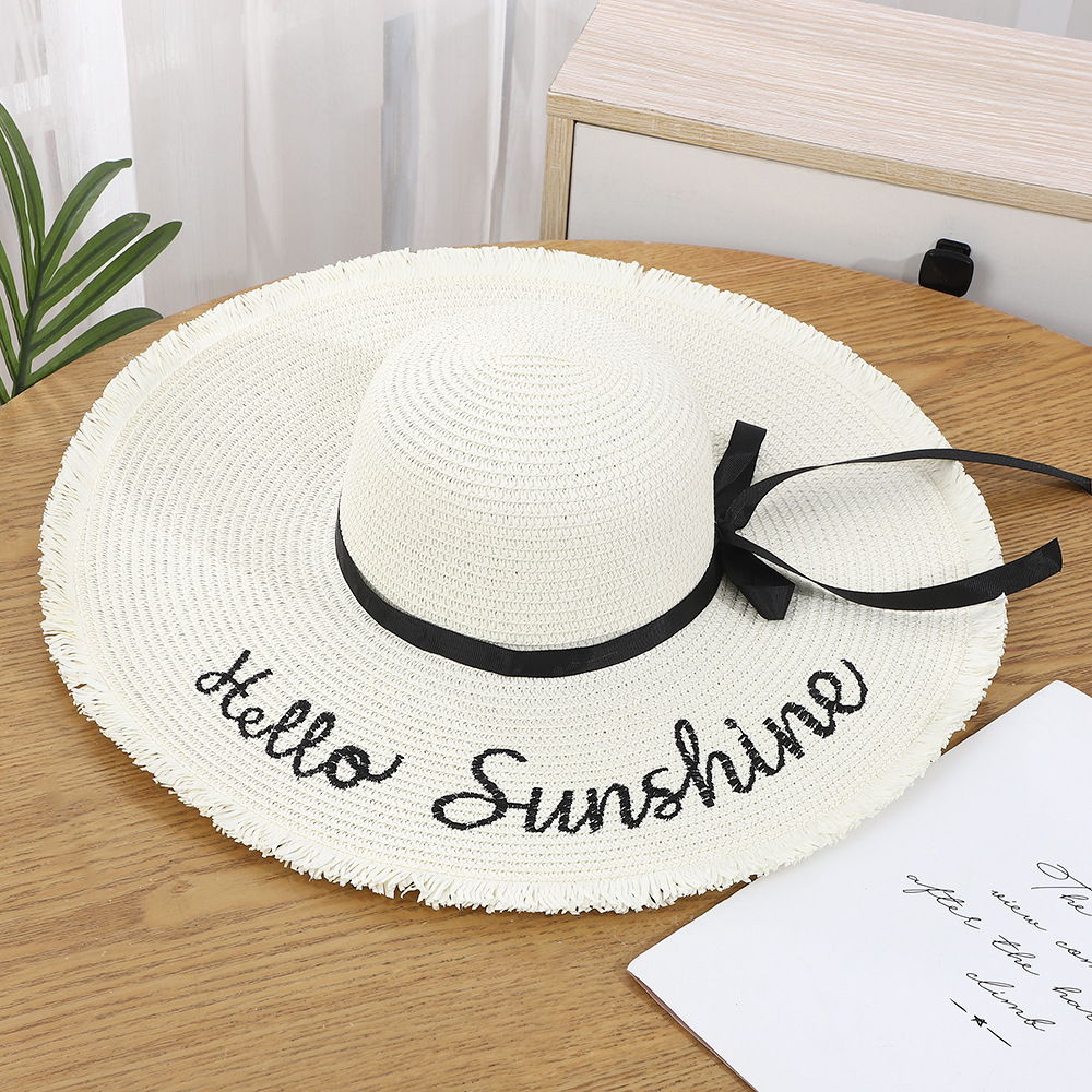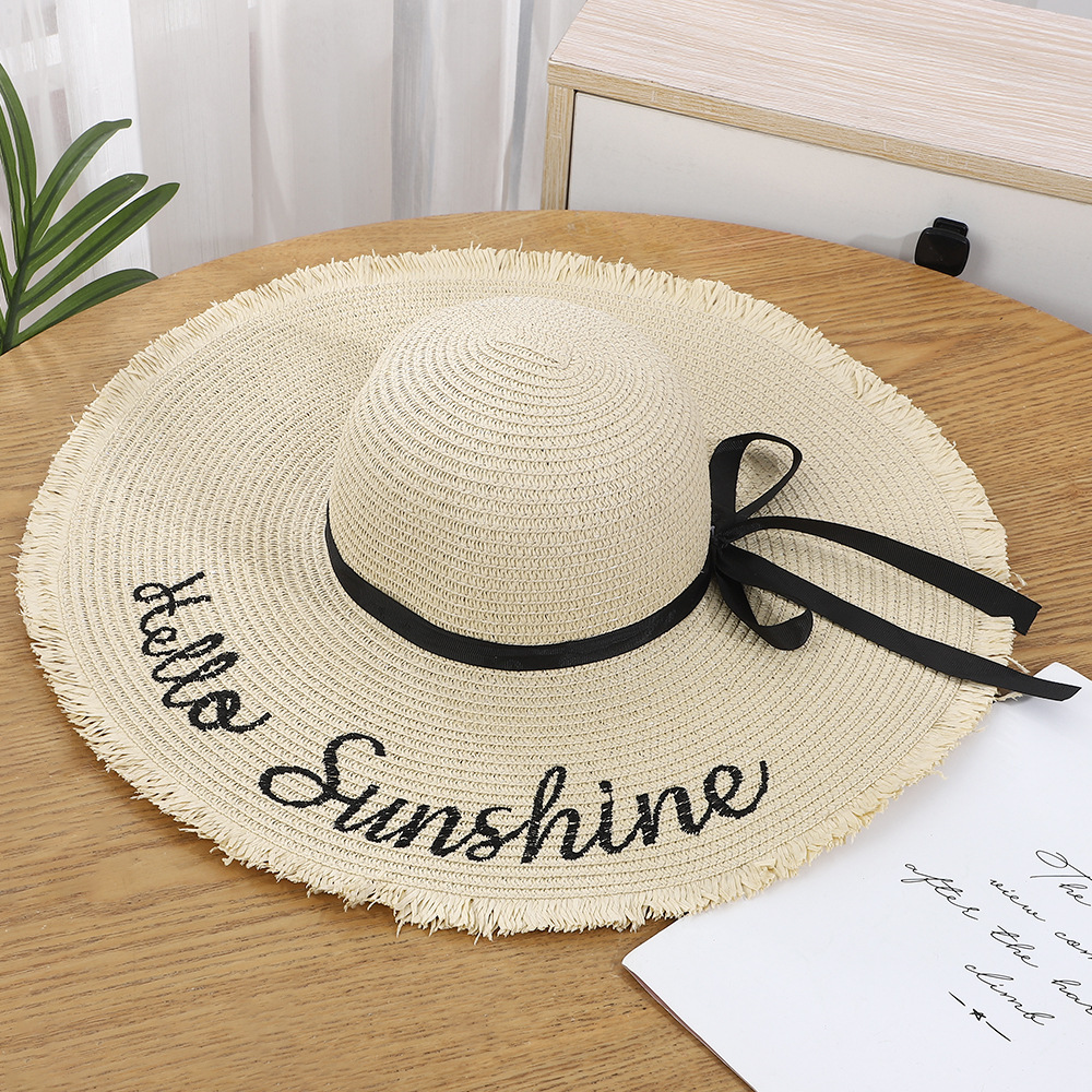 • 알파벳 자수 리본 밀짚모자 - 베이지
