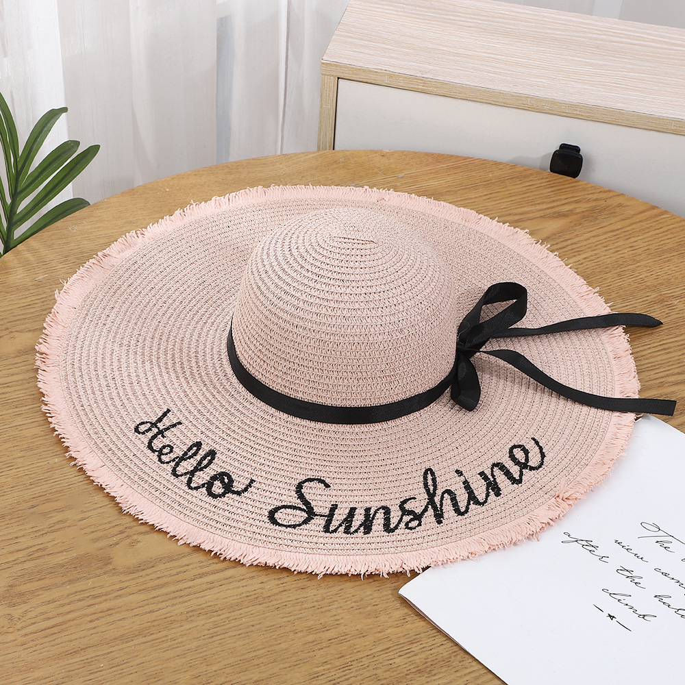 • 알파벳 자수 리본 밀짚모자 - 핑크