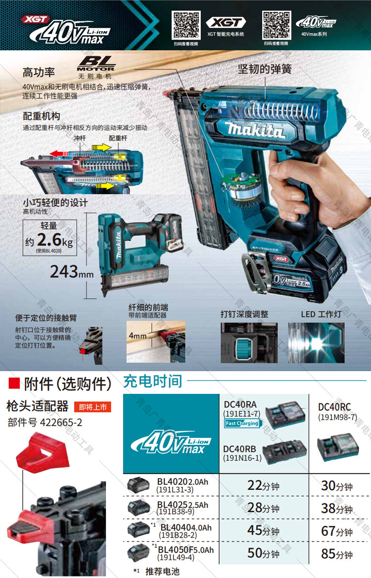 Makita Makita FN001G 충전식 네일 건 40V 리튬 배터리 네일 건 목공 장식 전기 네일 슈터스토어 가기