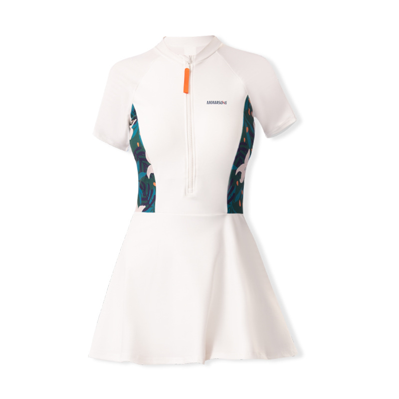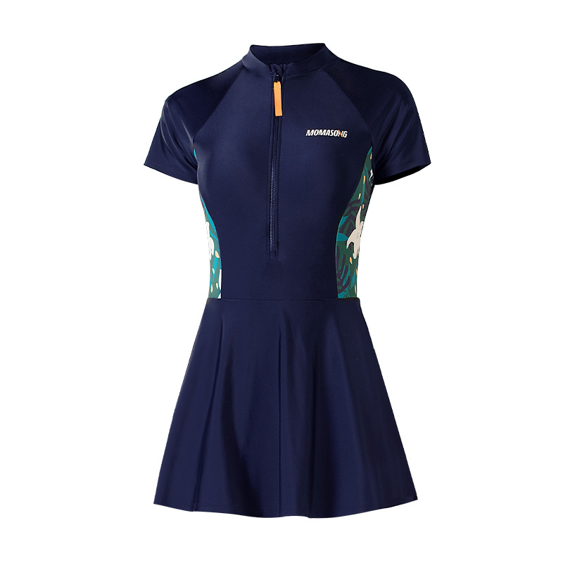 Momasong 새로운 여성용 반팔 원피스 수영복 전문 보수 온천 슬림 배꼽 덮음 스커트 해변 수영복