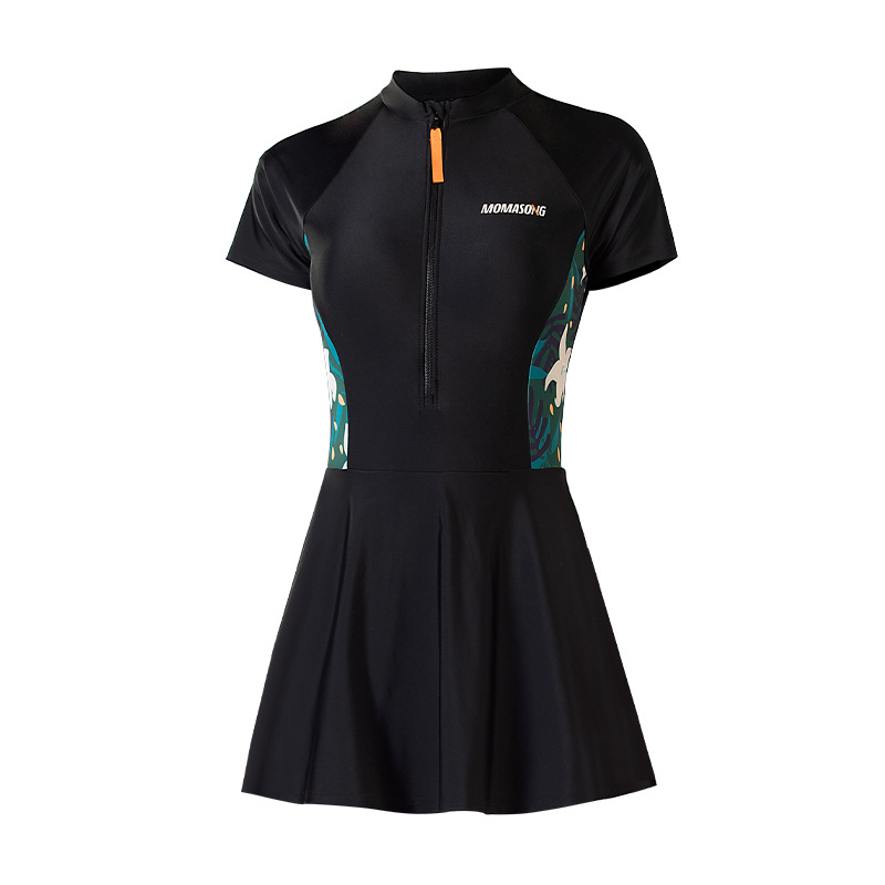 Momasong 새로운 여성용 반팔 원피스 수영복 전문 보수 온천 슬림 배꼽 덮음 스커트 해변 수영복스토어 가기
