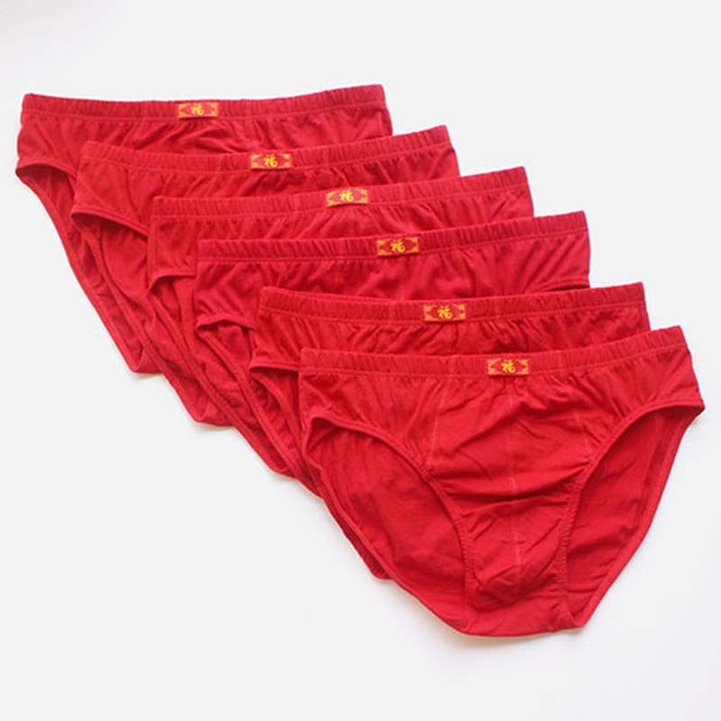 남성 속옷 삼각형 빅 레드 코튼 미드 웨이스트 루즈 팬츠 플러스 사이즈 뚱뚱한 남자 행운의 속옷