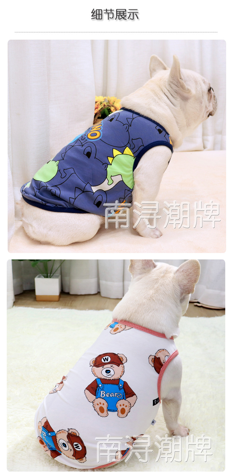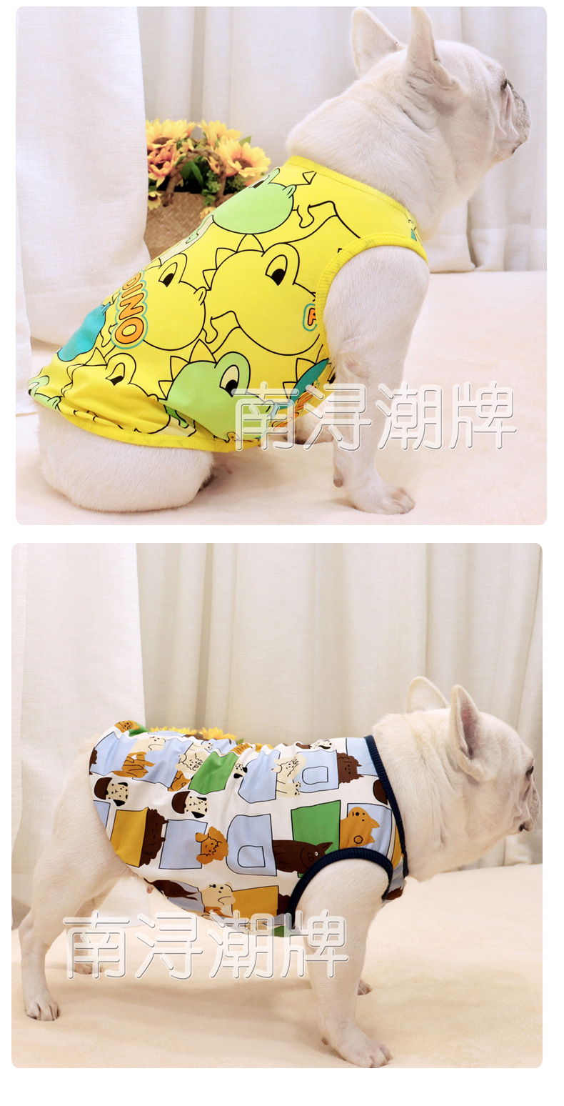 Fadou 옷 얇은 여름 조끼 만화 귀여운 공룡 면 표준 몸 불독 파고투 개 옷