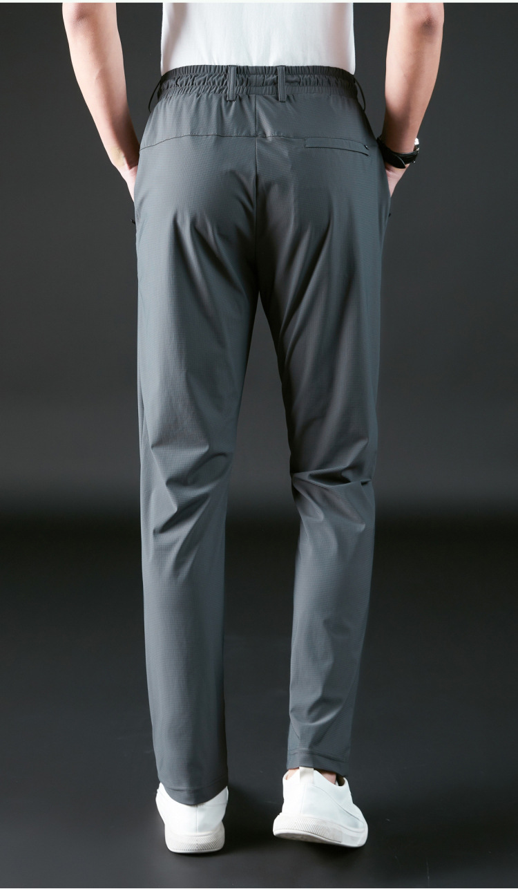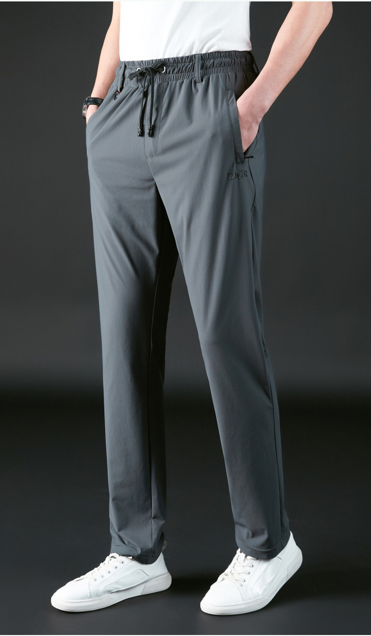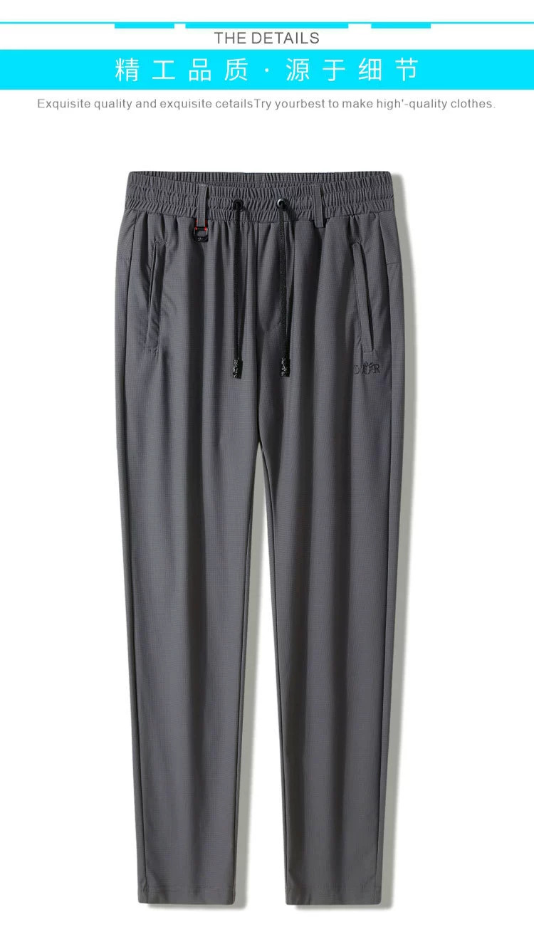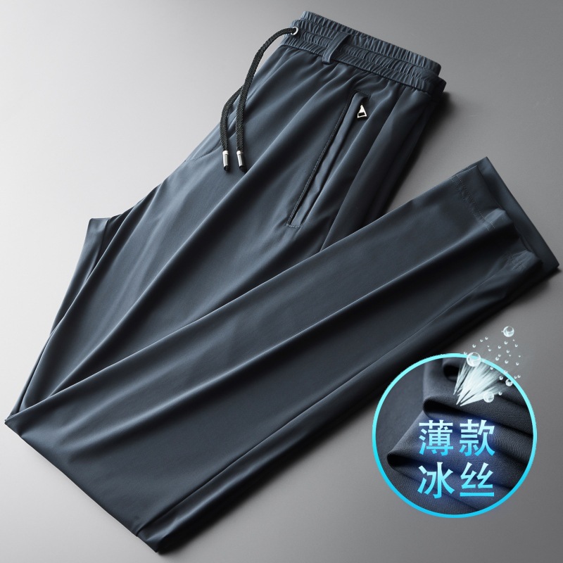 가벼운 럭셔리 스타일의 아이스 실크 캐주얼 스포츠 팬츠 남성용 슬림핏 얇은 스트레이트 팬츠 여름 통기성 남성용 속건 팬츠 25