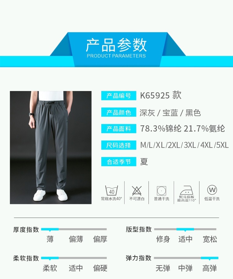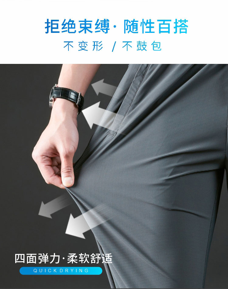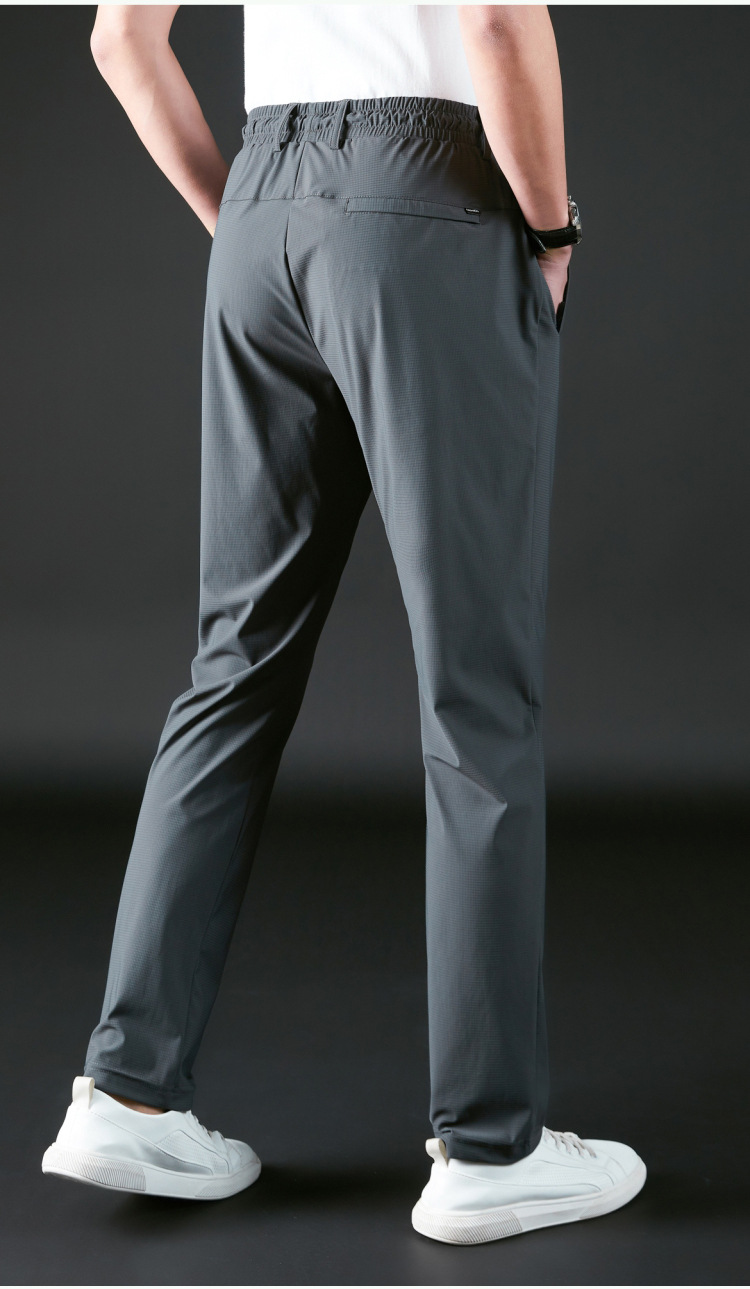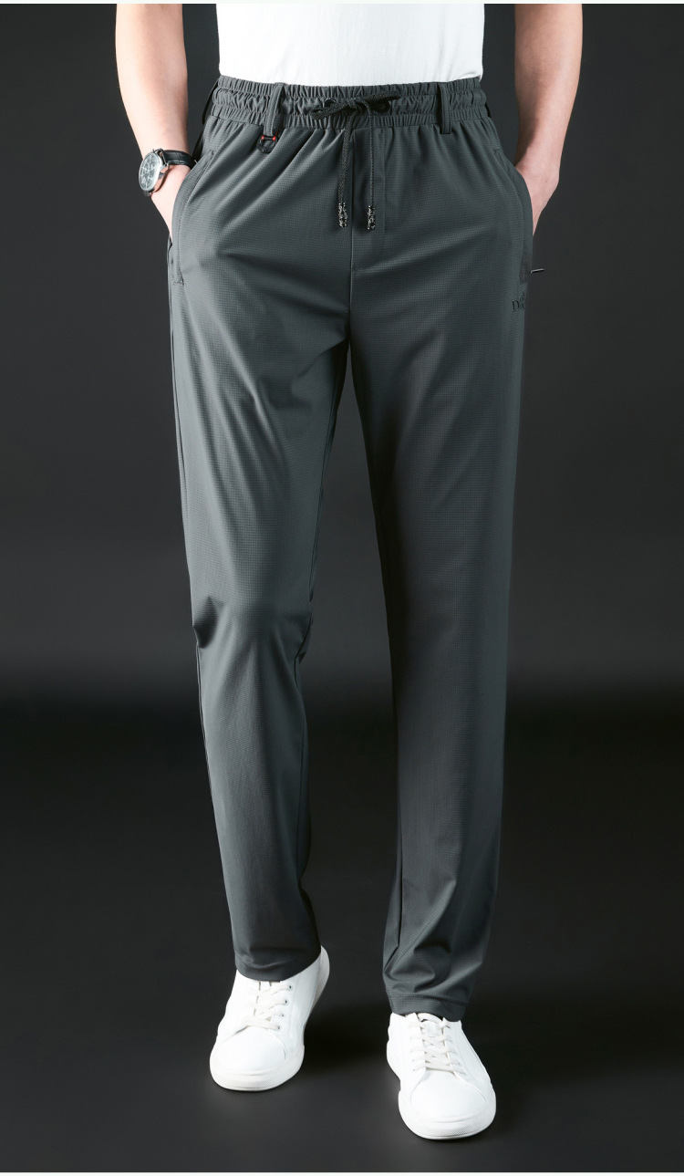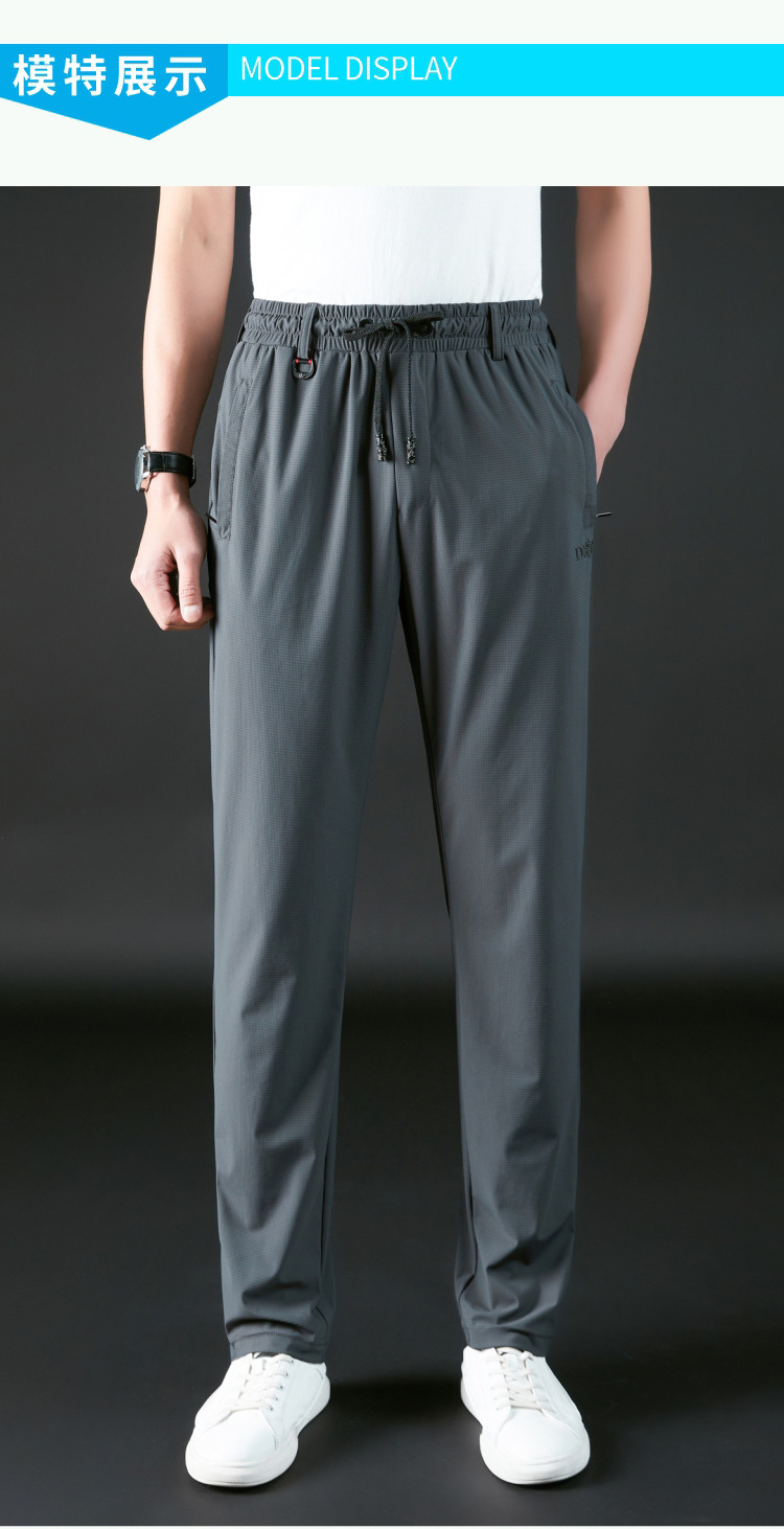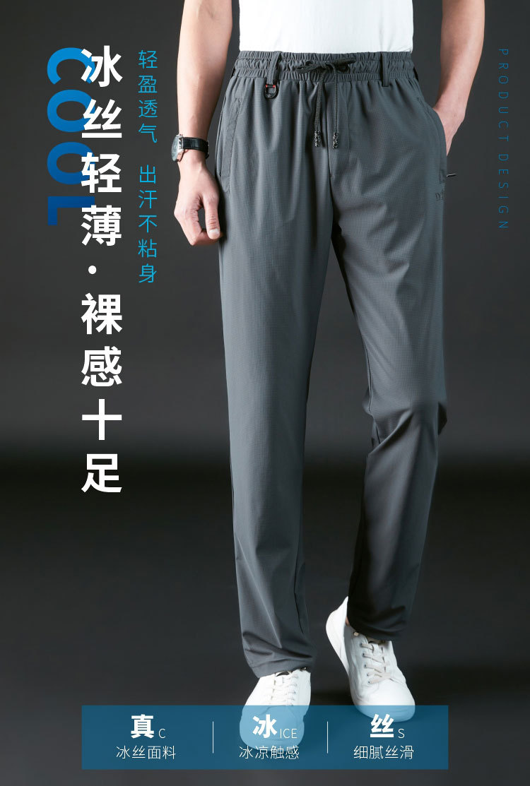 가벼운 럭셔리 스타일의 아이스 실크 캐주얼 스포츠 팬츠 남성용 슬림핏 얇은 스트레이트 팬츠 여름 통기성 남성용 속건 팬츠 25스토어 가기