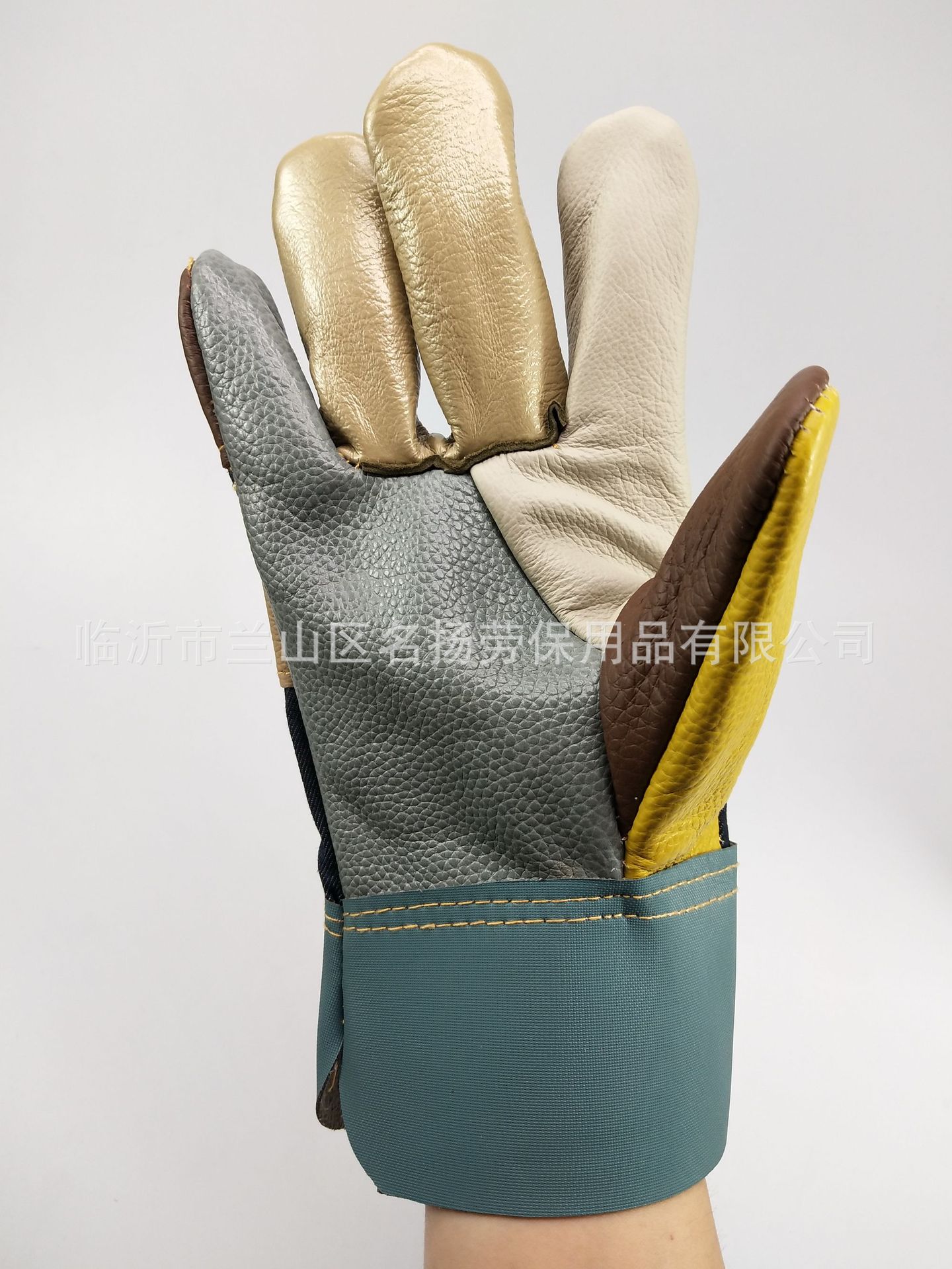공장 도매 잡색 짧은 첫 번째 레이어 소 가죽 화려한 데님 꽃 가죽 팜 용접 칼 장갑 용접기스토어 가기