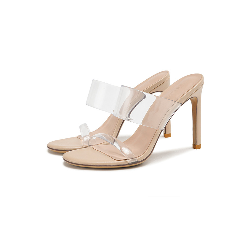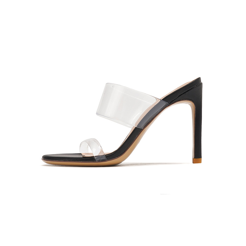 2025 새로운 봄과 여름 투명한 하이힐, 유럽과 미국 스타일의 투명한 청키 힐 샌들스토어 가기