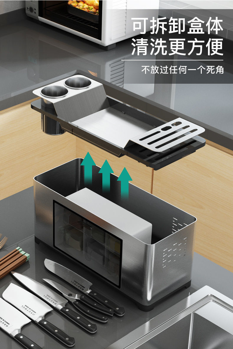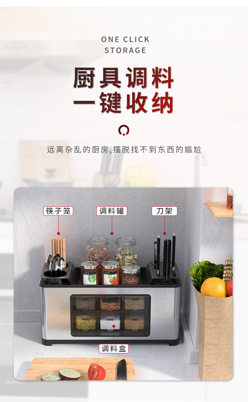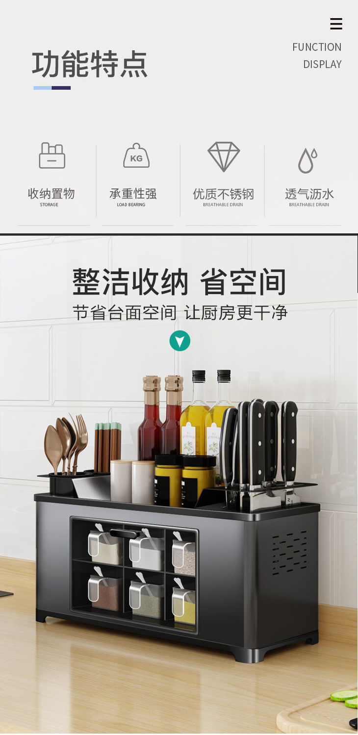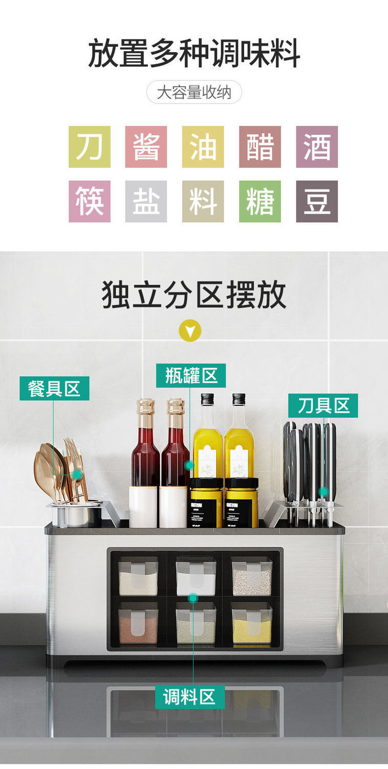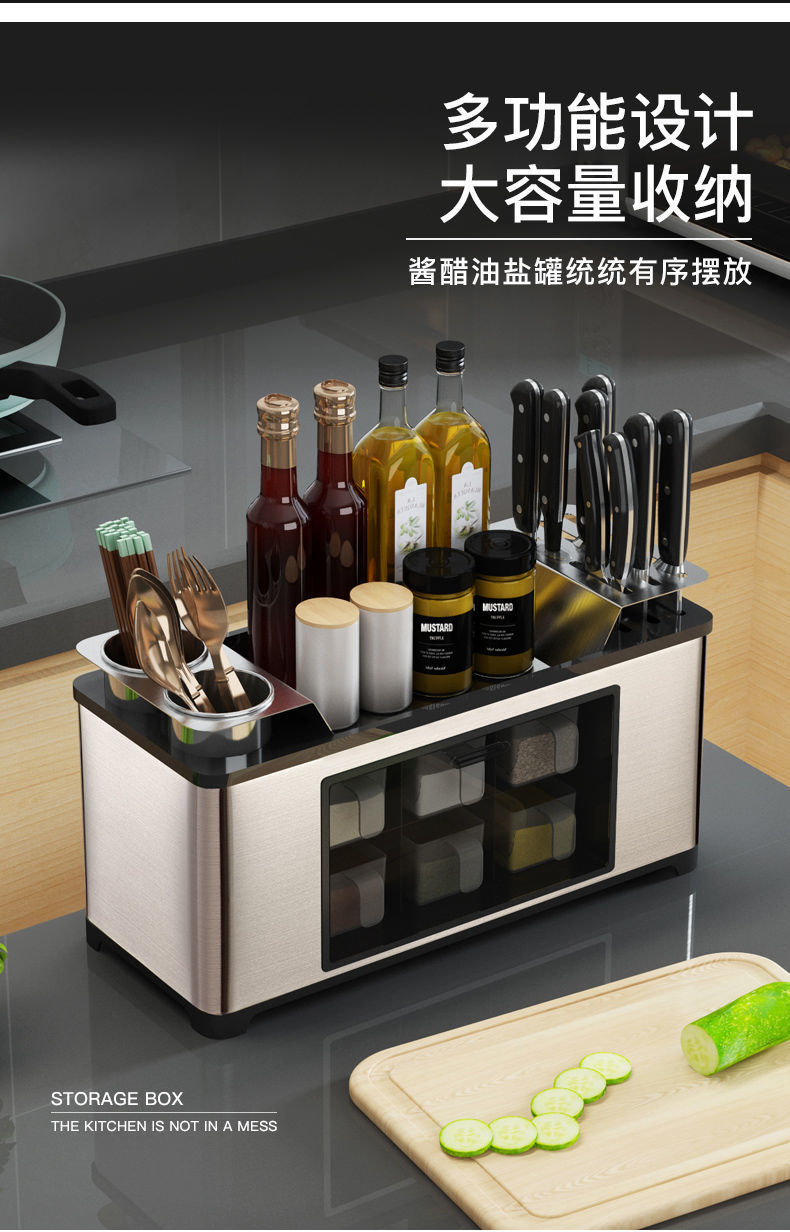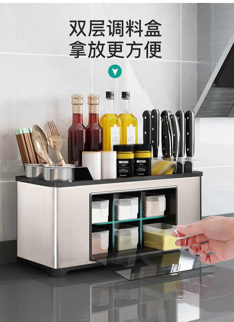 스테인리스 주방 수납 선반 양념 보관함 설치 불필요 젓가락 칼꽂이 양념병 보관 칼꽂이