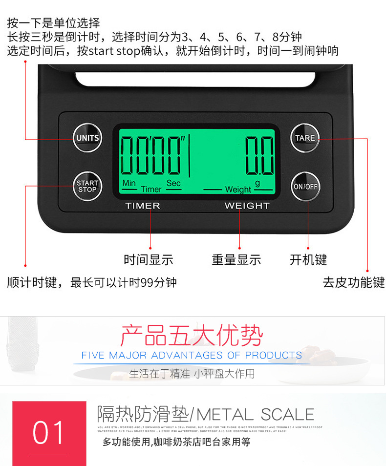 공장 직판 해외 가정용 주방 식품 전자 핸드드립 커피 전자저울 3kg5kg 식품 무게 도매
