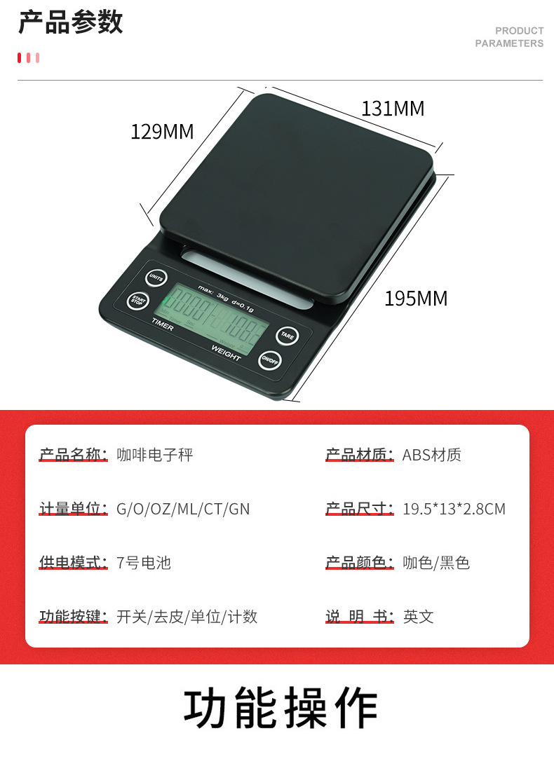 공장 직판 해외 가정용 주방 식품 전자 핸드드립 커피 전자저울 3kg5kg 식품 무게 도매스토어 가기