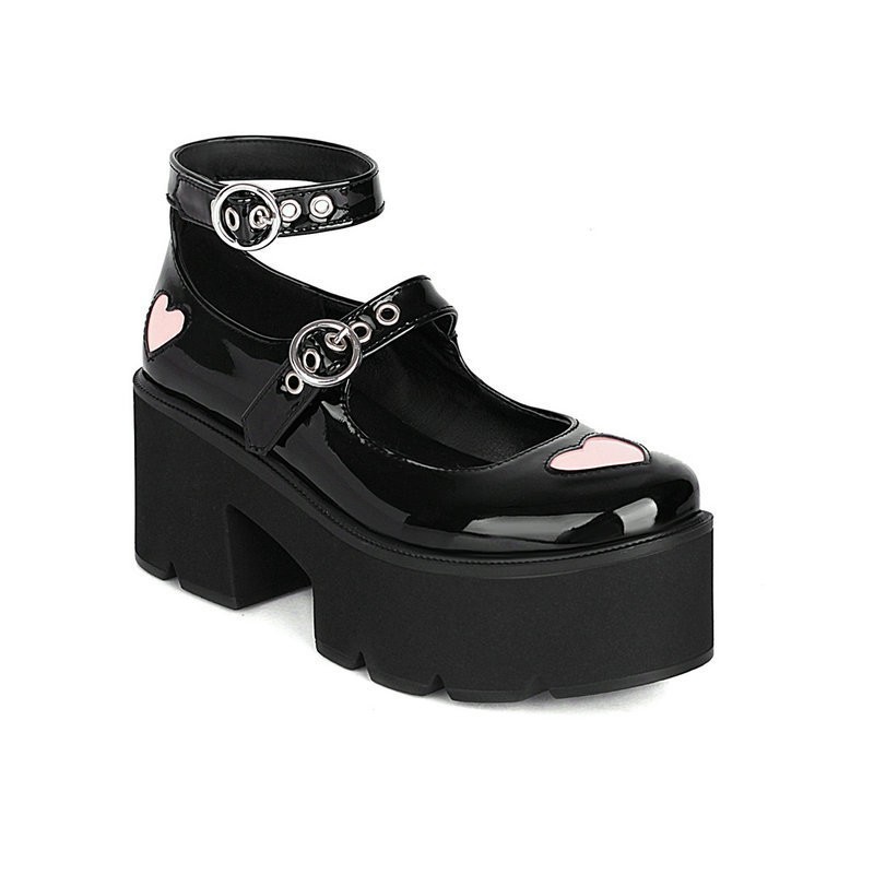 2023년 신상 글루스틱 슈즈 가죽 벨트 버클 하트 모양 얕은 입구 두꺼운 밑창 플랫폼 캐주얼 슈즈스토어 가기