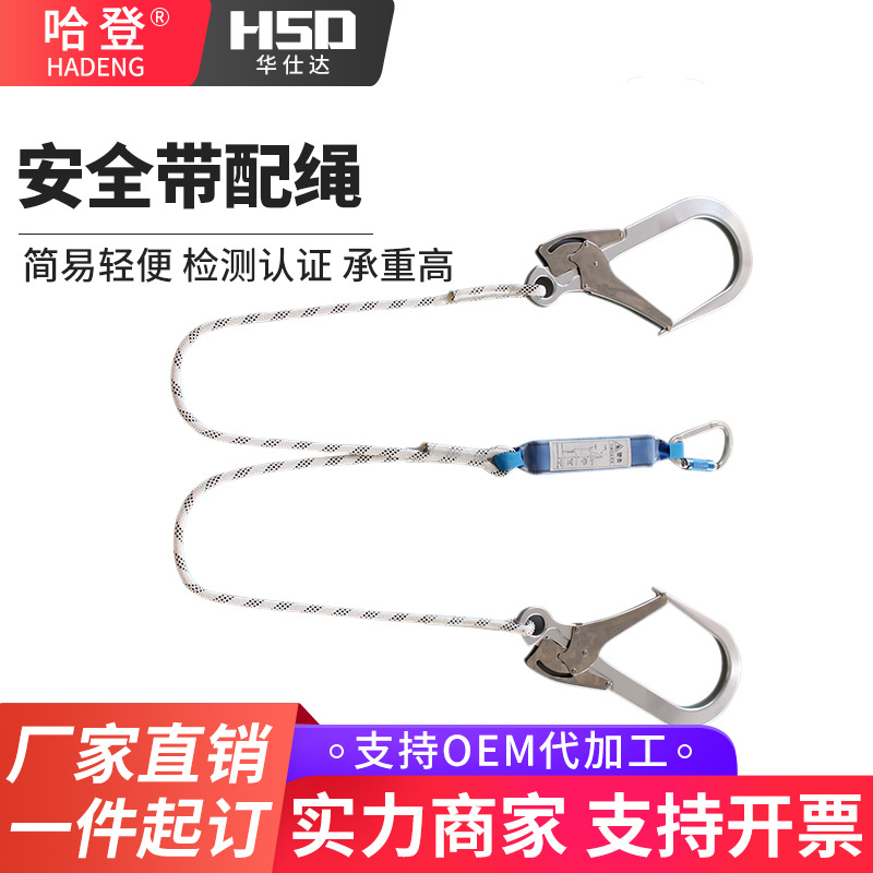알루미늄 합금 초대형 후크 안전 로프 버퍼 백이있는 이중 대형 후크 안전 로프 낙하 방지 안전 로프스토어 가기
