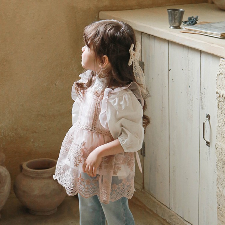 • (Sf665) 핑크 거즈 레이스 블라우스