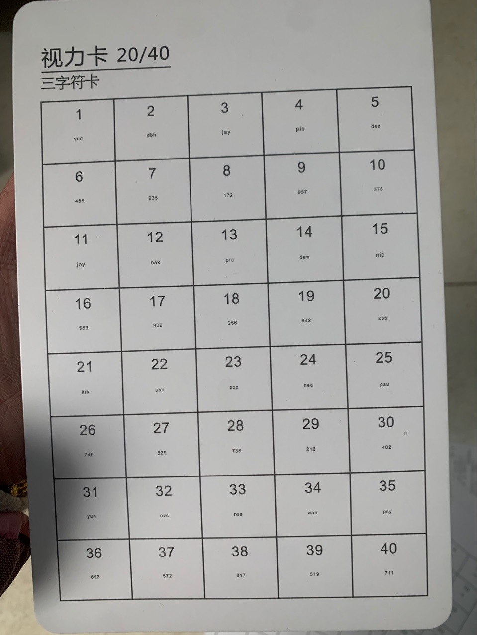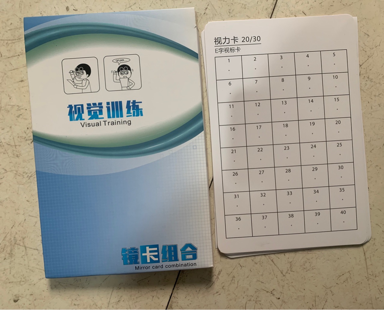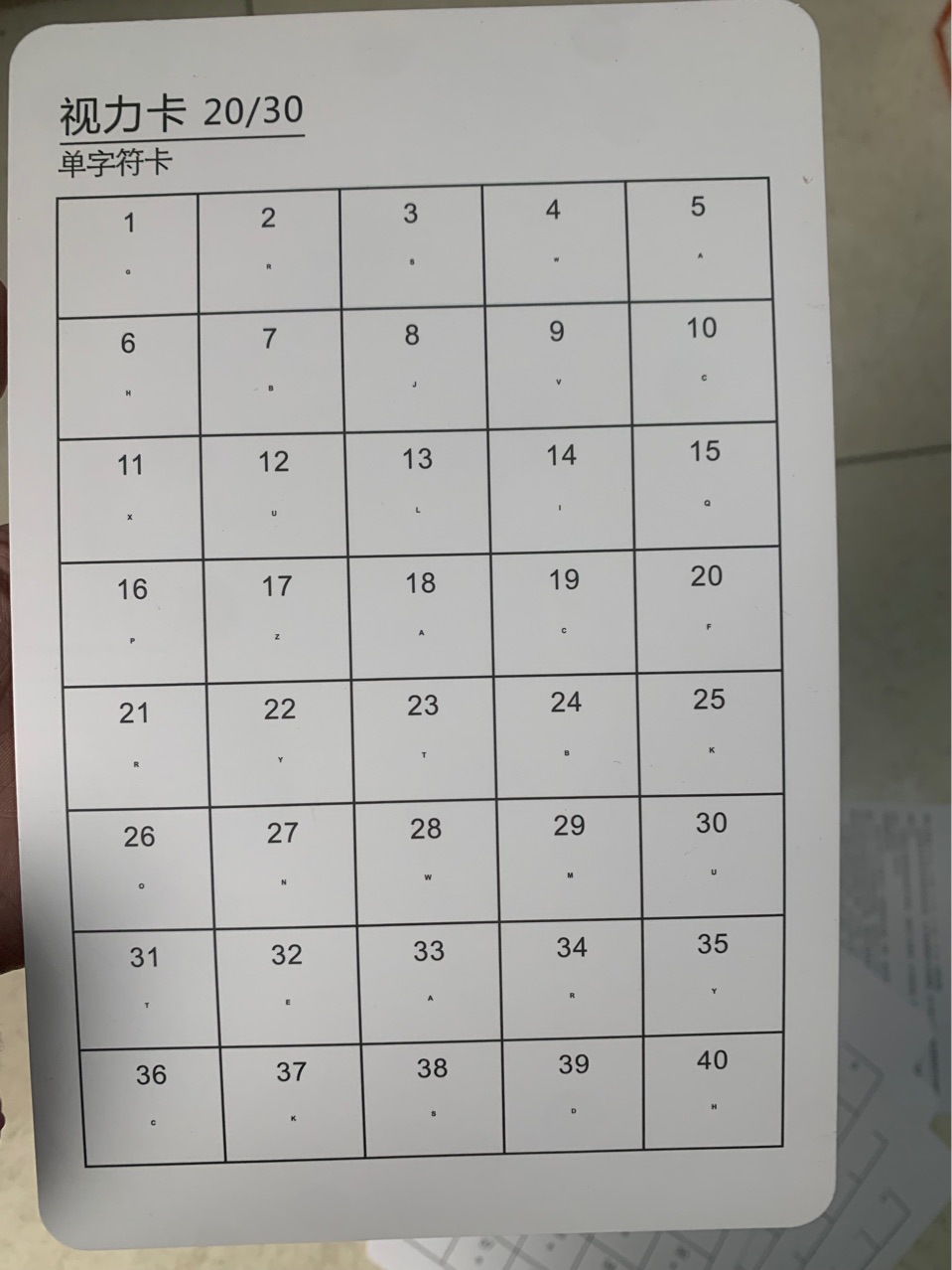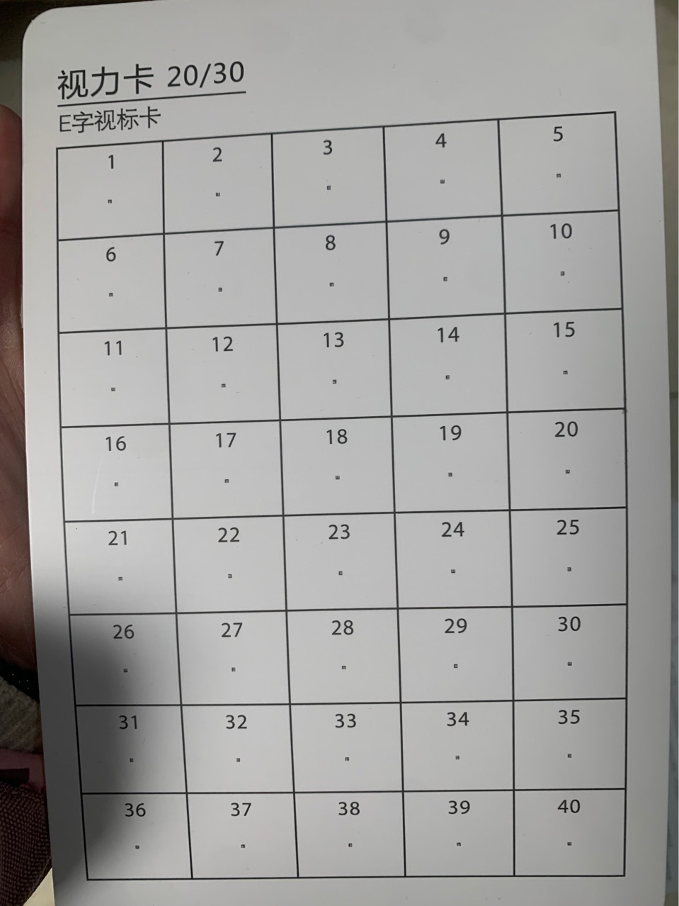 • 양면: 한쪽 20/30 E 문자/한쪽 20/40 E 문자