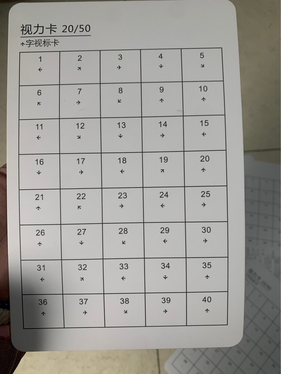 • 양면: 한쪽 20/50 항공기 로고/한쪽 20/40 단일 문자