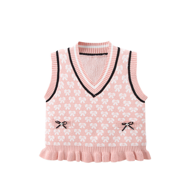 한국 스타일 아기의 조끼 봄과 가을 여아 조끼 서양 스타일 니트 스웨터 핑크 조끼를 입고 여자 조끼