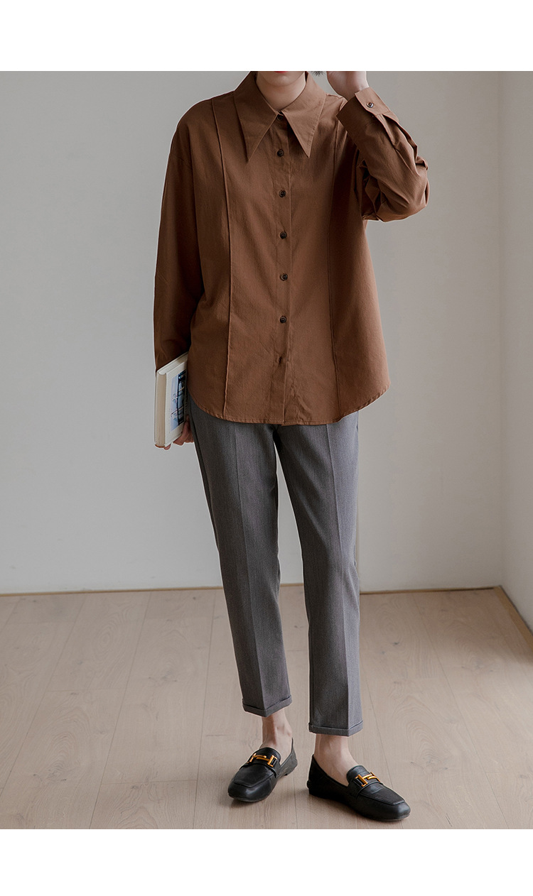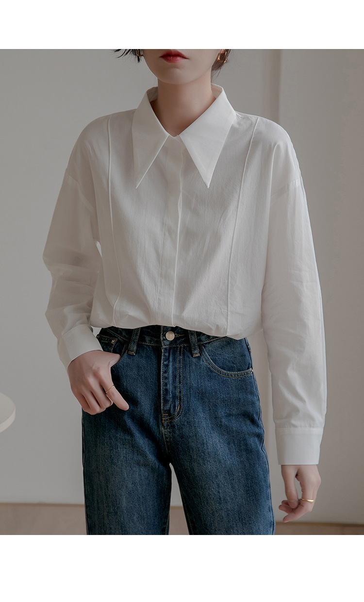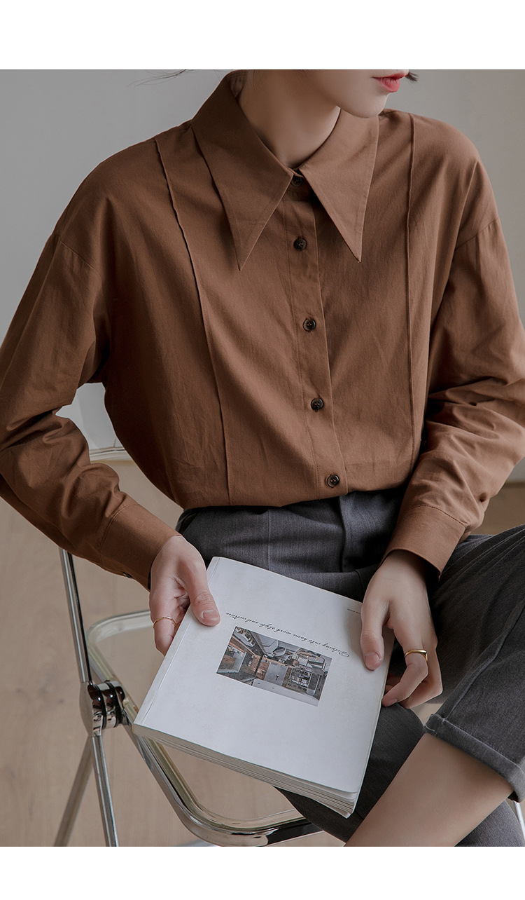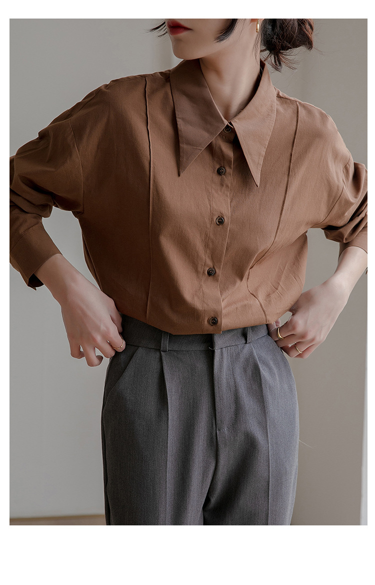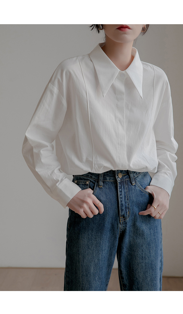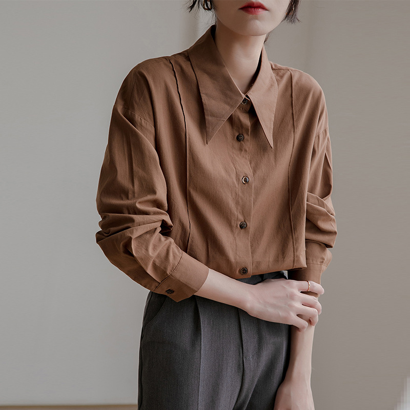 NVYIS2025 봄 포인트 칼라 셔츠 여성 디자인 틈새 프렌치 탑 루즈 캐주얼 셔츠 여성 긴 소매스토어 가기