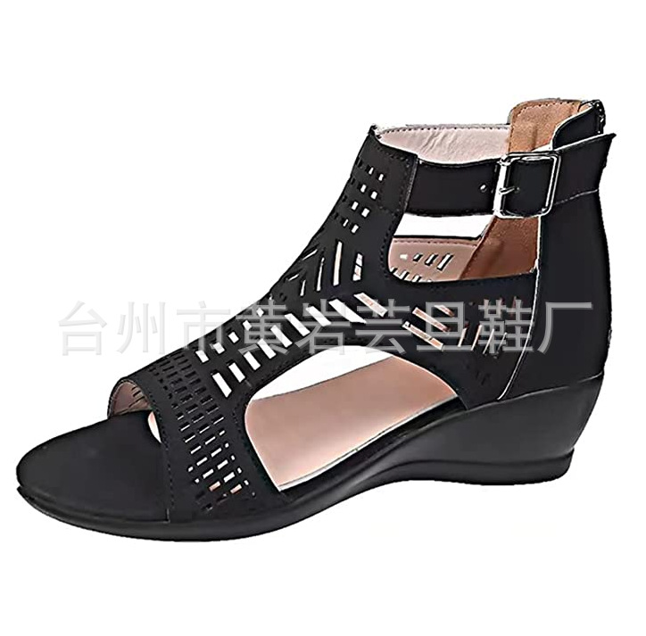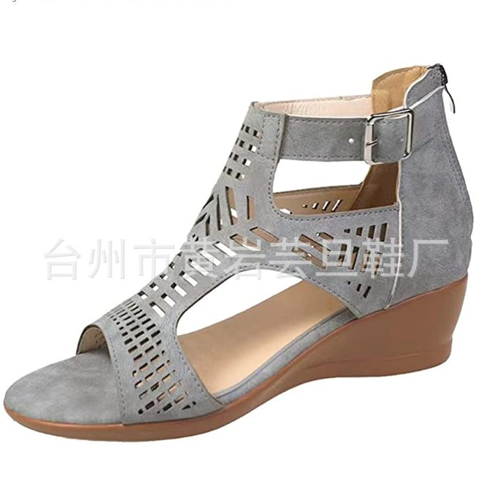 플러스 사이즈 웨지 샌들 여자의 2022 여름 새로운 유럽과 미국 웨지 버클 로마 샌들 여자의 아마존 독립 역