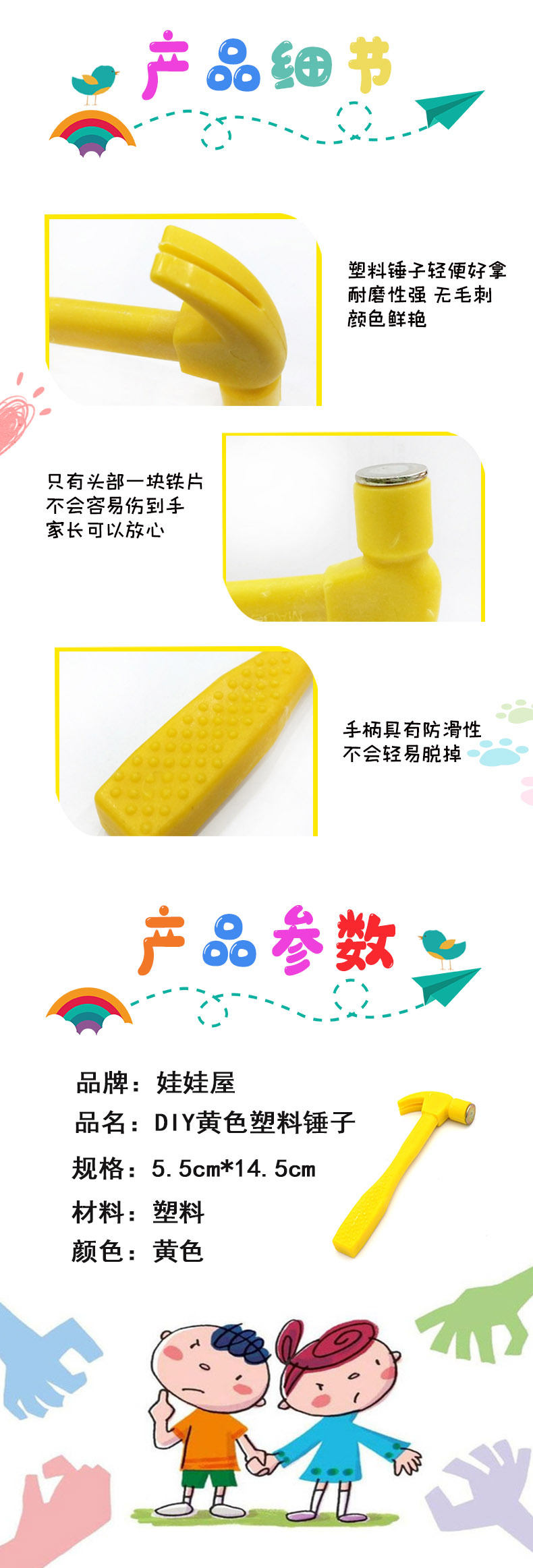 E1 노란색 pvc 해머 클로 해머 미니 비 마크 네일 작은 망치 플라스틱 핸들 작은 노란색 망치 어린이 DIY 도구