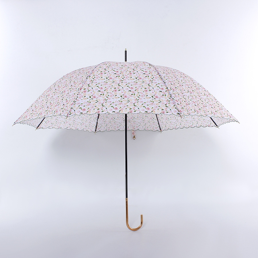 재고 C235 봄 운 자수 긴 우산 스트레이트 우산 한국 꽃 맑은 우산 울트라 라이트 숙녀 모리