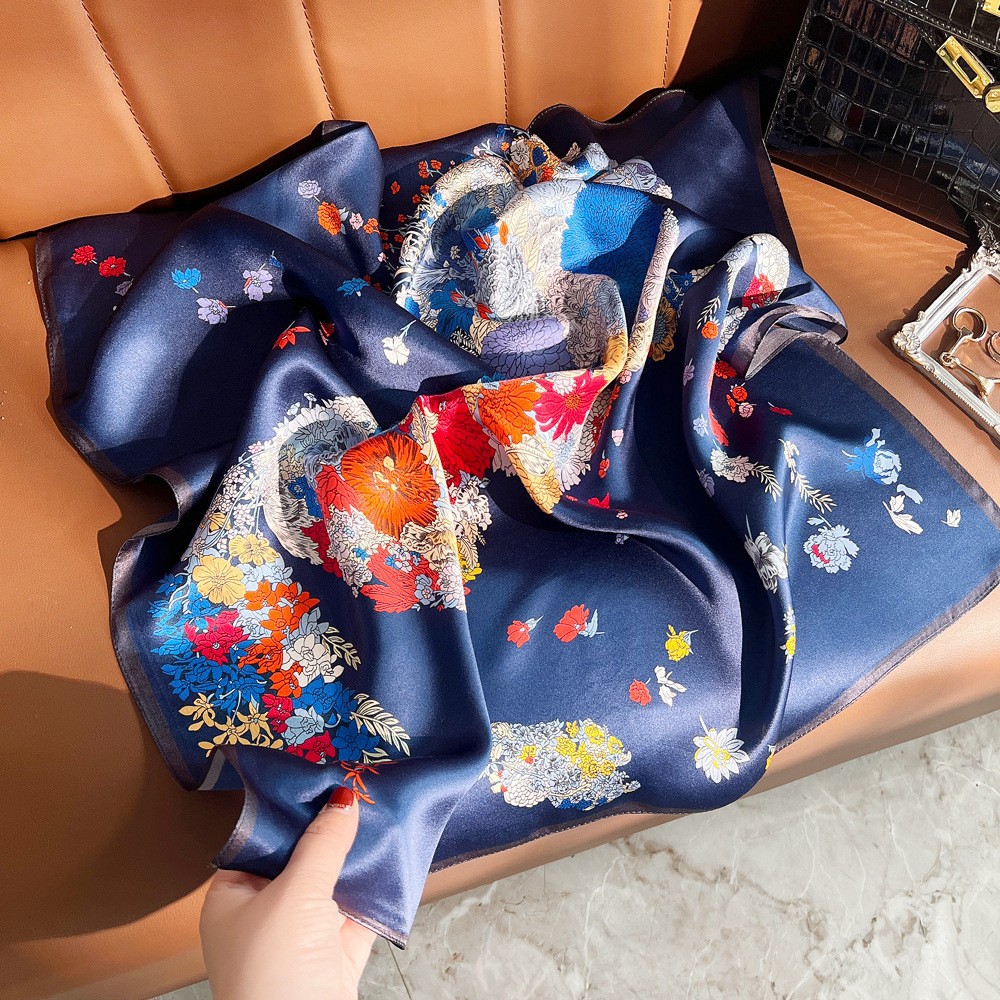 봄 여름 여성용 실크 스카프, 패셔너블하고 다재다능한 고급 뽕나무 실크 스퀘어 스카프, 무지 크레이프 새틴 실크 선물용 스카프 도매스토어 가기