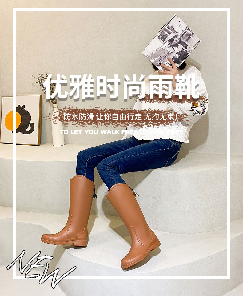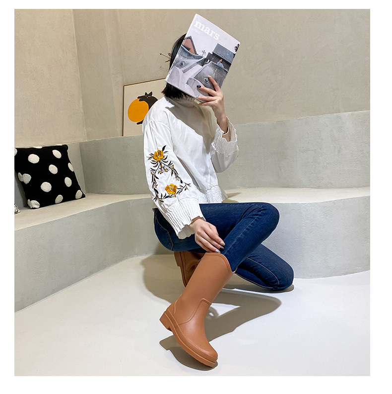 세련된 간단한 고등학교 장화 여성용 방수 미끄럼 방지 워터 부츠 내마모성 겉옷 신발 주방 작업 슬리브 여성 신발스토어 가기