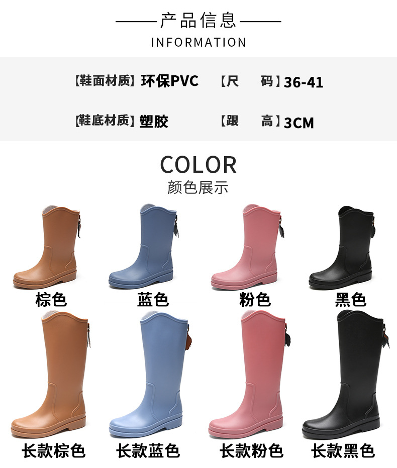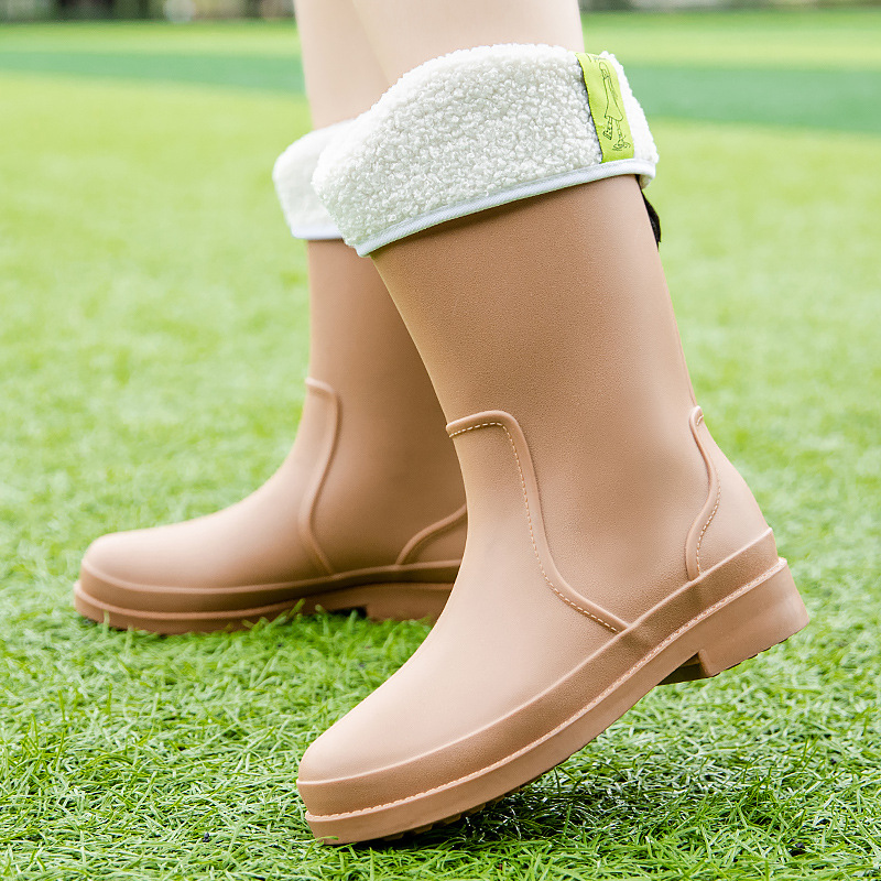 세련된 간단한 고등학교 장화 여성용 방수 미끄럼 방지 워터 부츠 내마모성 겉옷 신발 주방 작업 슬리브 여성 신발