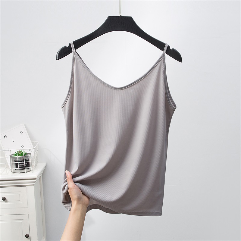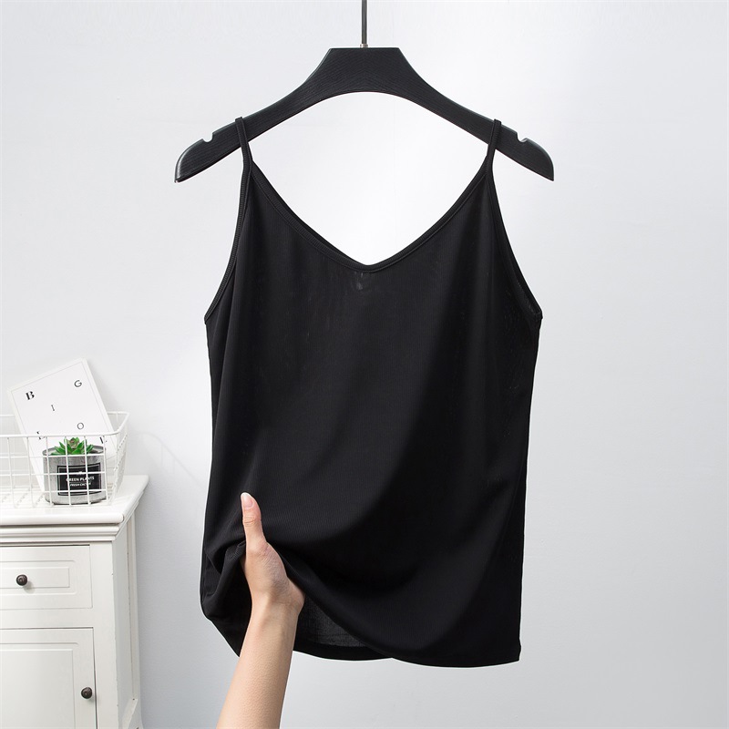 아이스 실크 스레드 캐미솔 여성용 봄과 여름 이너웨어 V넥 루즈한 올매치 민소매 베이스 씬 탑 여성용