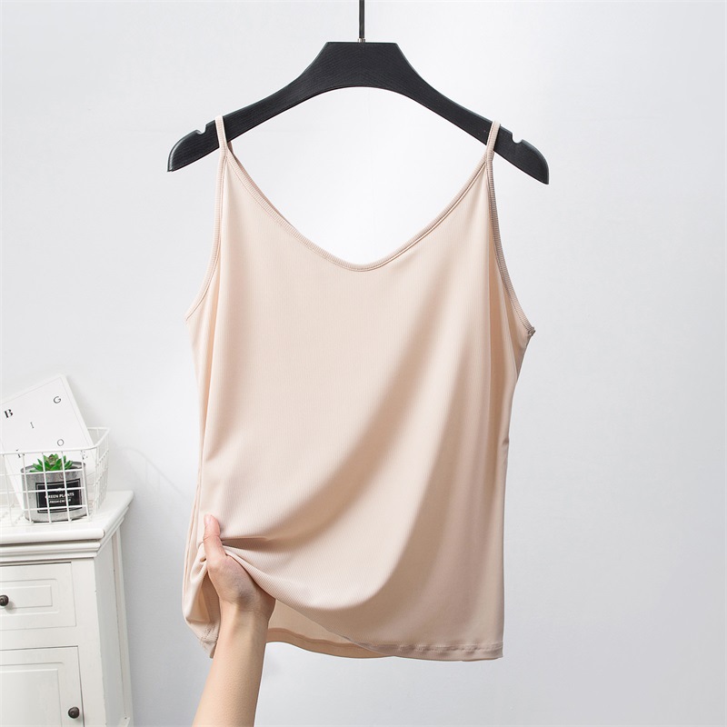 아이스 실크 스레드 캐미솔 여성용 봄과 여름 이너웨어 V넥 루즈한 올매치 민소매 베이스 씬 탑 여성용스토어 가기
