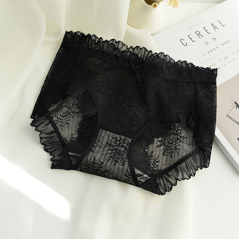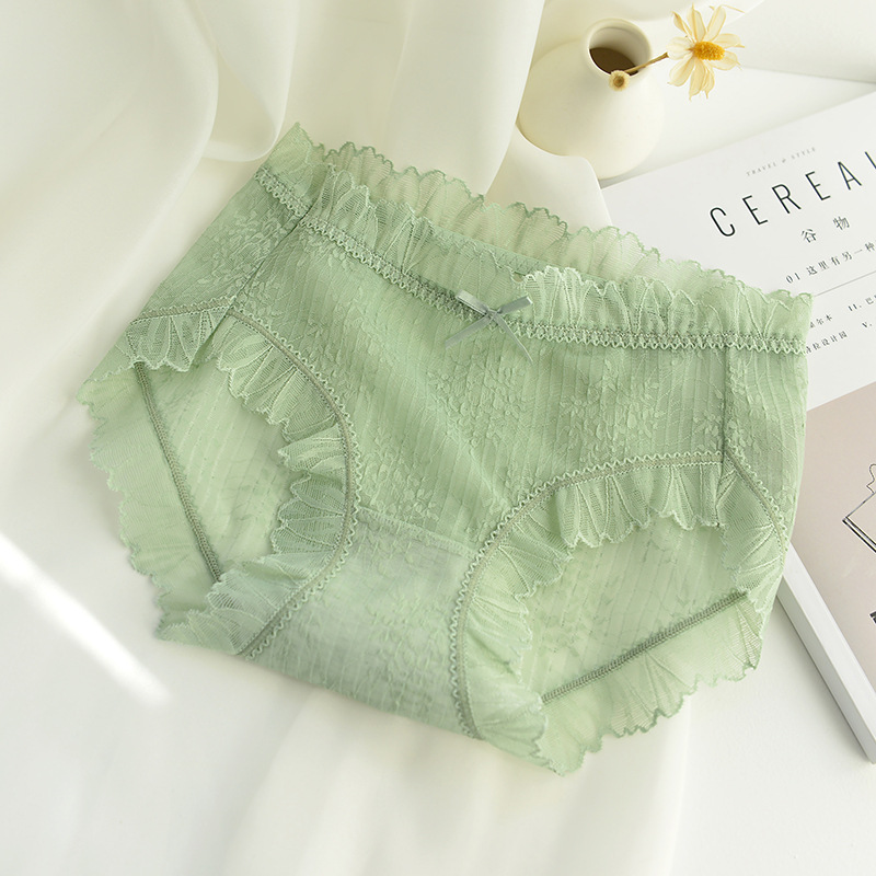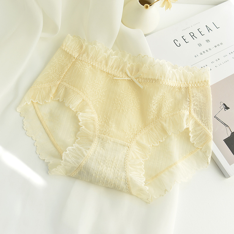 여성용 일본 봄 여름 레이스 속옷, 순면, 통기성, 이음매 없는 중간 허리, 여성용 팬티, 순면 가랑이