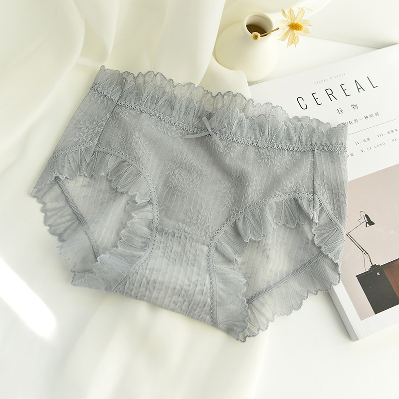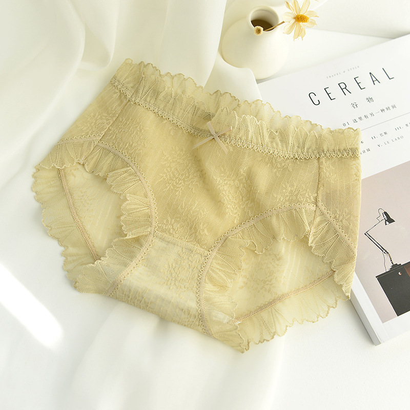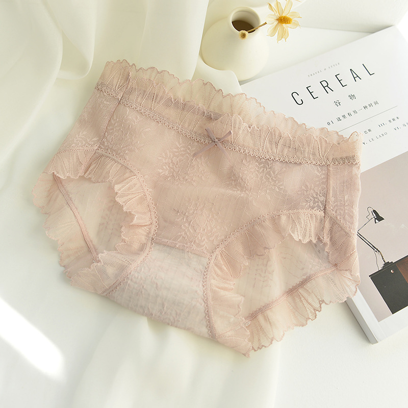 여성용 일본 봄 여름 레이스 속옷, 순면, 통기성, 이음매 없는 중간 허리, 여성용 팬티, 순면 가랑이스토어 가기