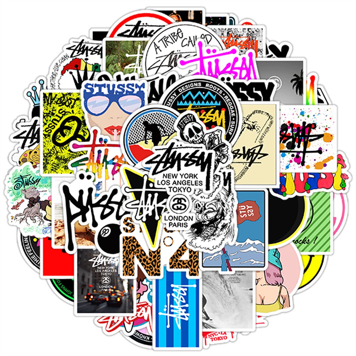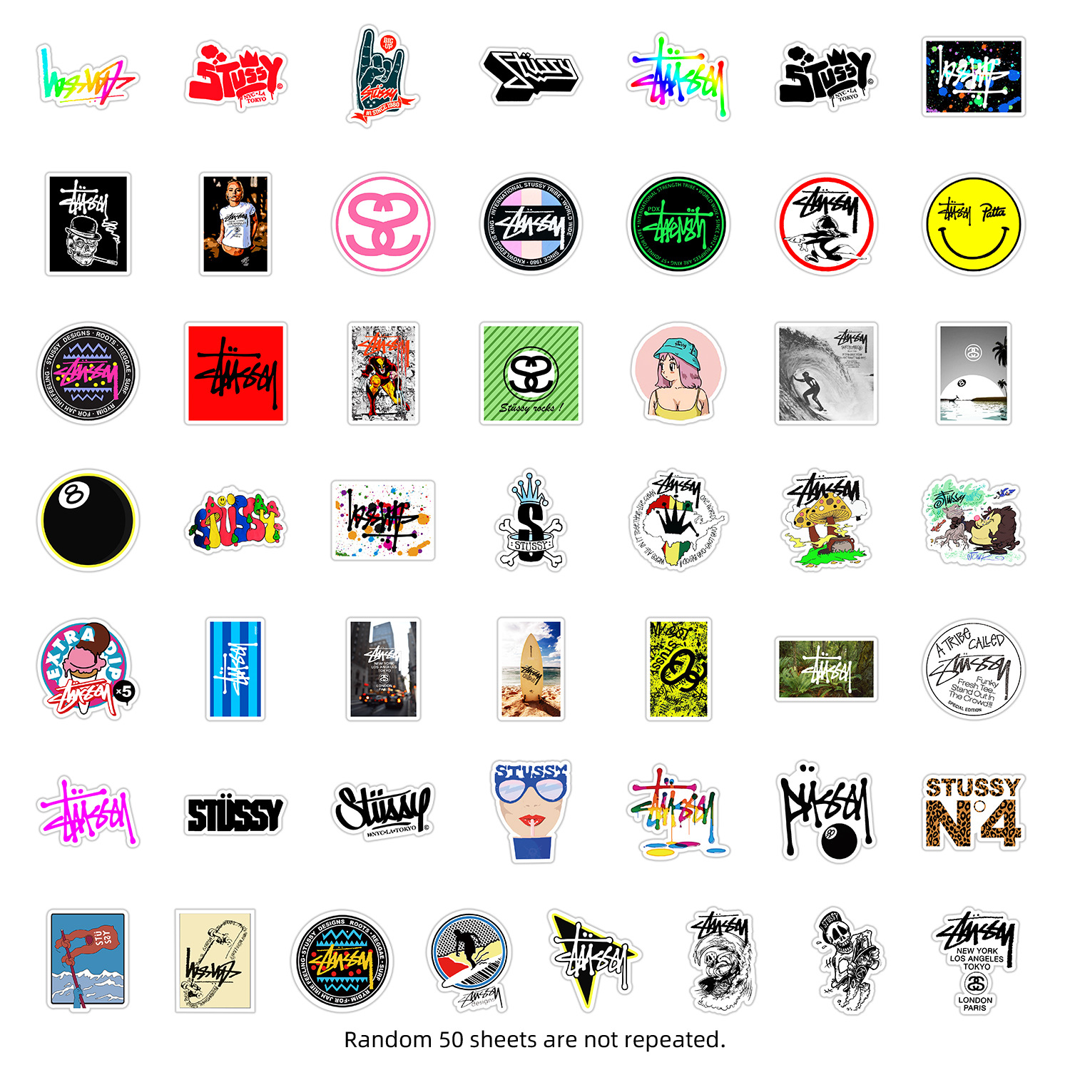 50 stuxi 거리 낙서 스티커 자동차 휴대 전화 스케이트 보드 수하물 장식 스티커 방수 손 계정 스티커