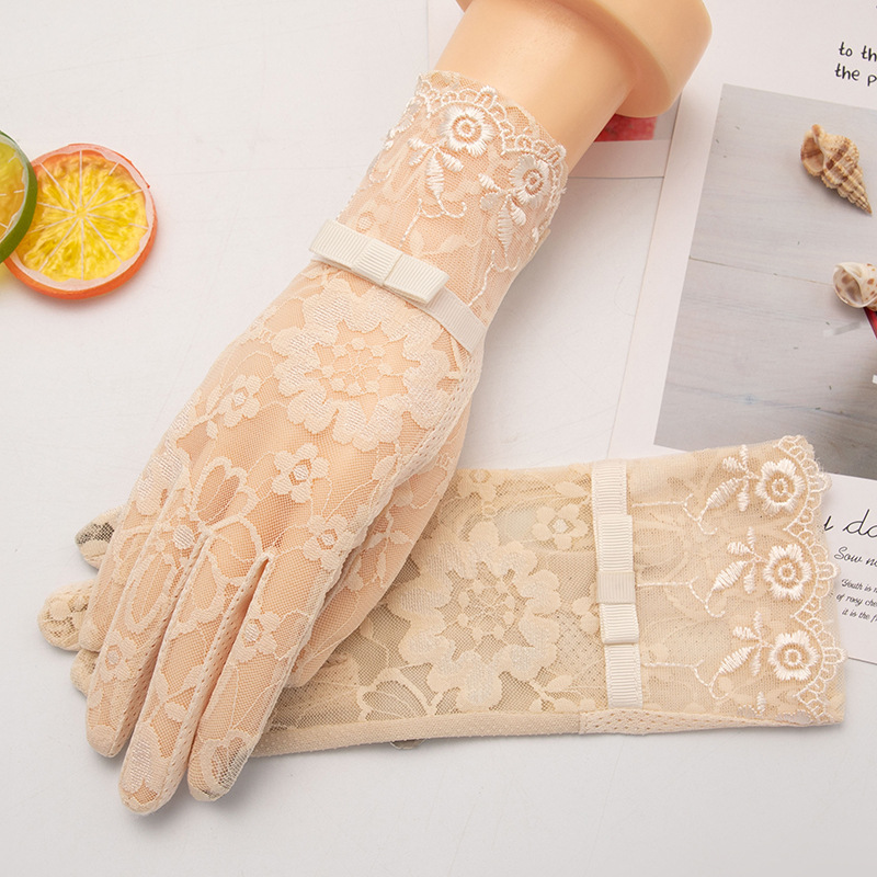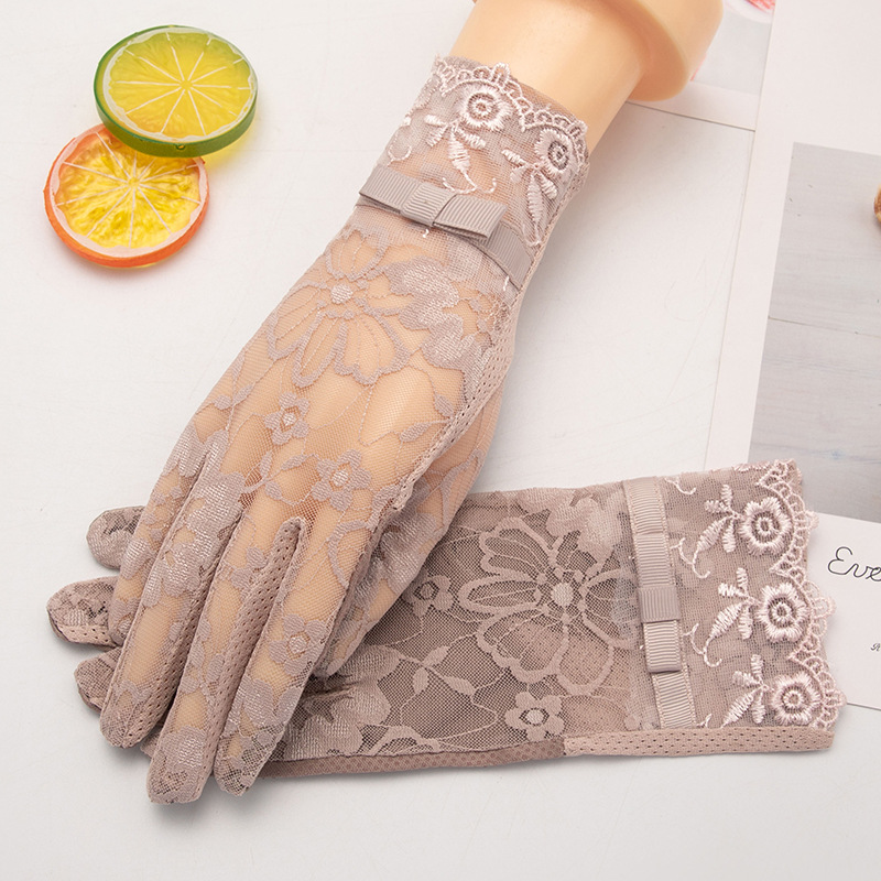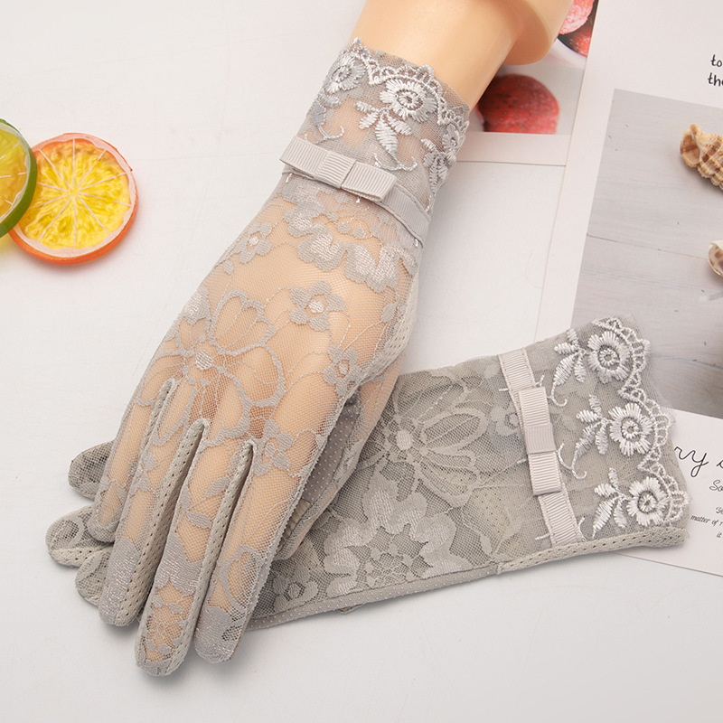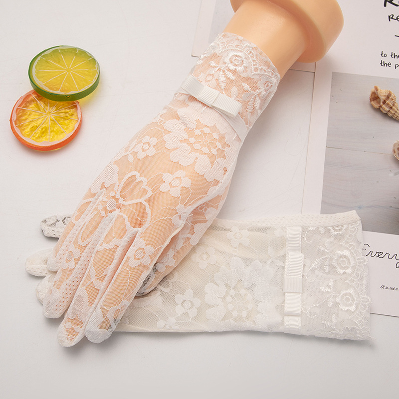 레이스 자외선 차단 장갑 여성용 여름용 아이스 실크 얇은 스타일 운전 및 자전거 타기용 터치스크린 미끄럼 방지 짧은 스타일스토어 가기