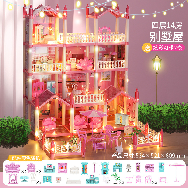 크로스 보더 어린이 플레이 하우스 소녀 공주 성 빌라 장난감 DIY 성 인형 집 조립 조명 빌라스토어 가기