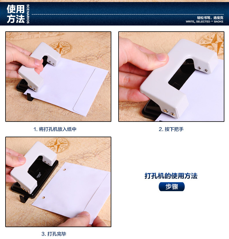 Baoke 학교 비즈니스 사무용품 파일 재료 A4 종이 바인딩 펀칭 기계 색상 임의의 머리스토어 가기