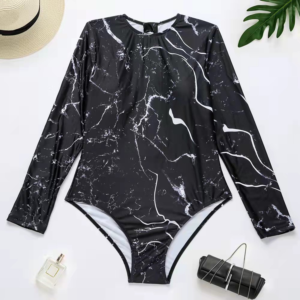 2025 유럽 및 미국 프린트 원피스 수영복 여성용 크로스보더 스포츠 긴팔 타이트 슬림 수영복 서핑 유럽 및 미국 패션스토어 가기