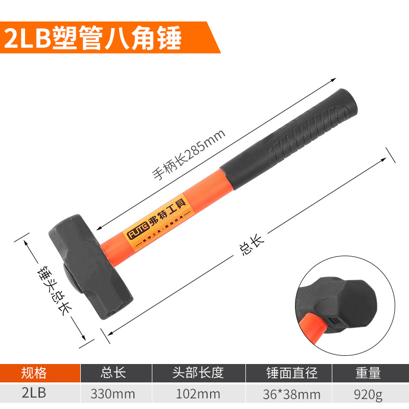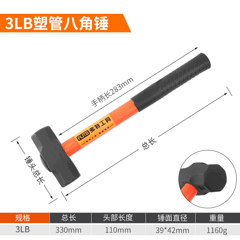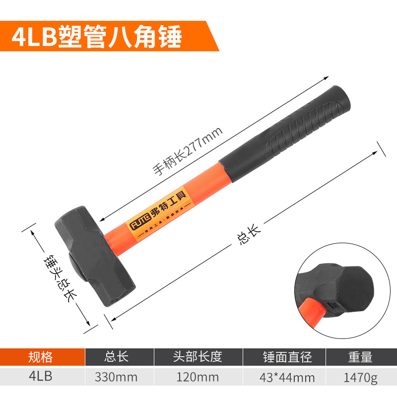 포르테 산업용 PVC 플라스틱 파이프 팔각형 해머 해머 234LB 충격 방지 핸들 블랙 헤드 타악기 해머