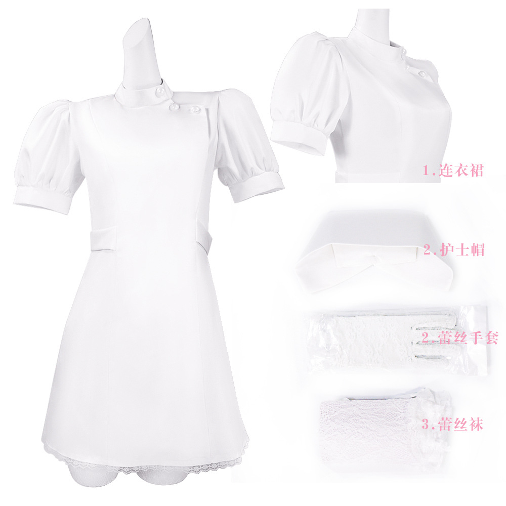 • 220043 화이트 간호사복 (원피스 + 간호사 모자 + 레이스 장갑 + 양말)
