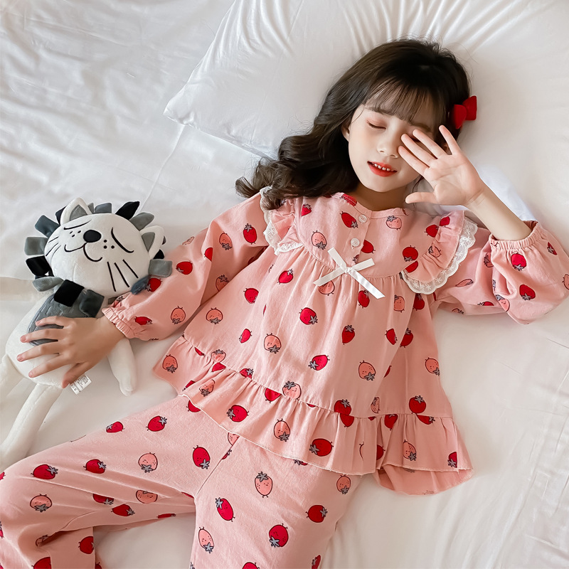 어린이 긴팔 잠옷 여아 면 가정 옷 세트 가을 어린이 어린 소녀 봄과 가을 만화 에어컨 옷