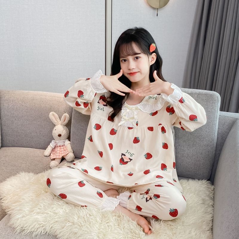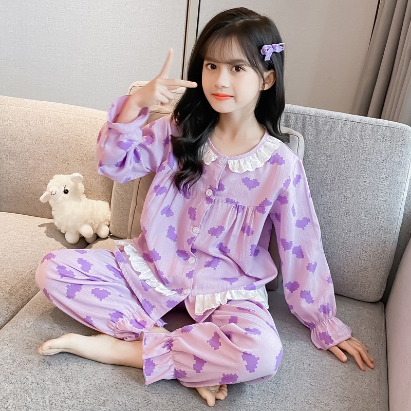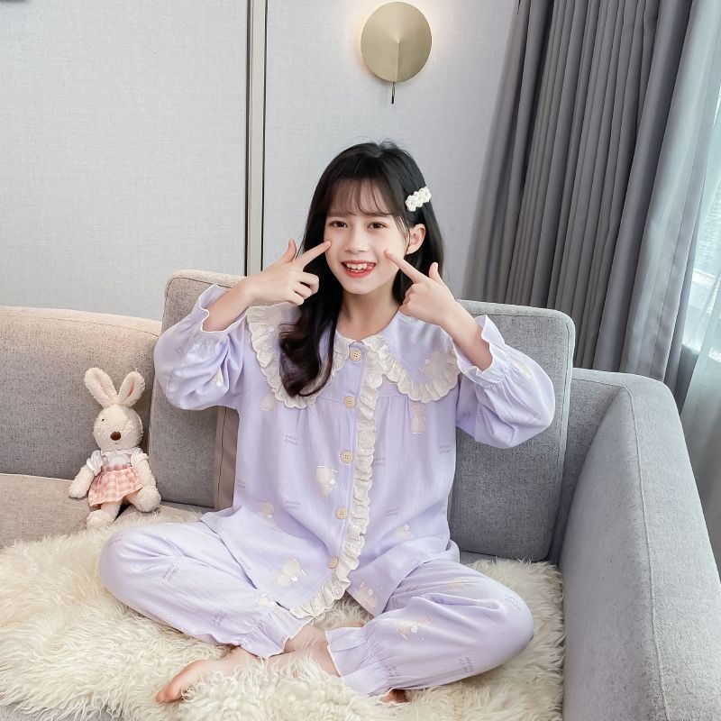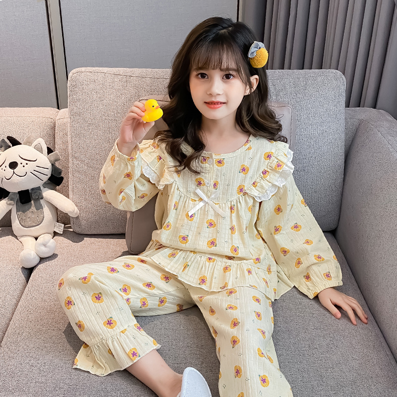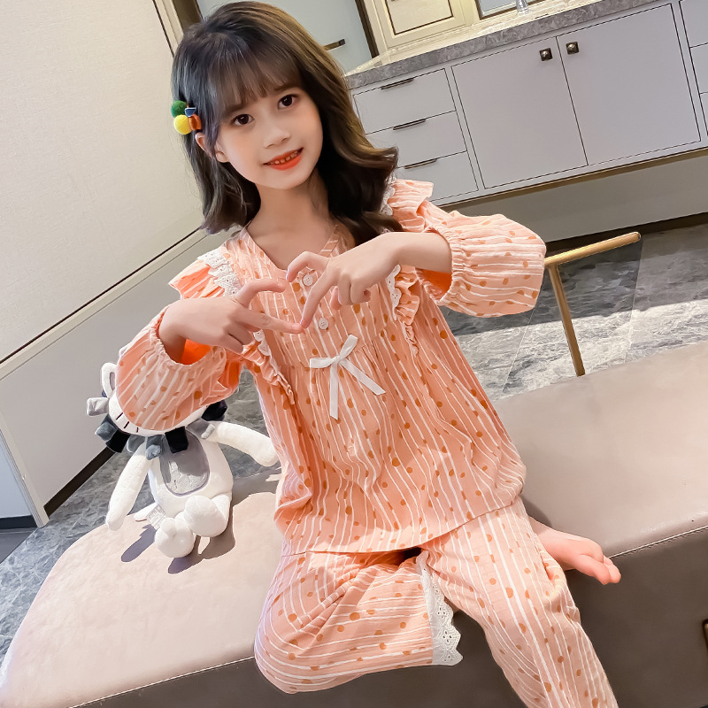 어린이 긴팔 잠옷 여아 면 가정 옷 세트 가을 어린이 어린 소녀 봄과 가을 만화 에어컨 옷스토어 가기
