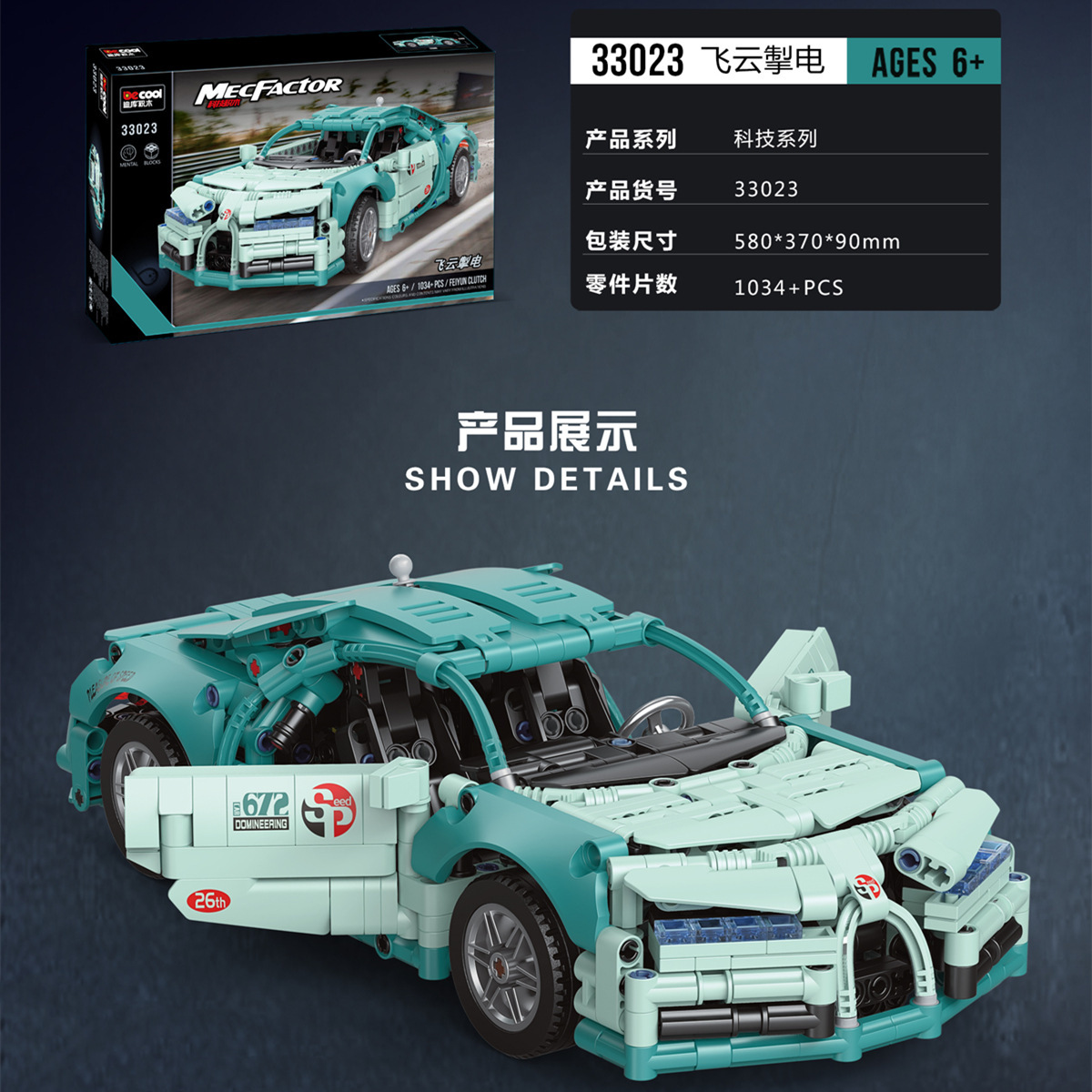 디쿠 33013-025 스포츠카 조립식 소년용 오프로드 자동차 모델 장식품 어린이 교육용 블록 장난감