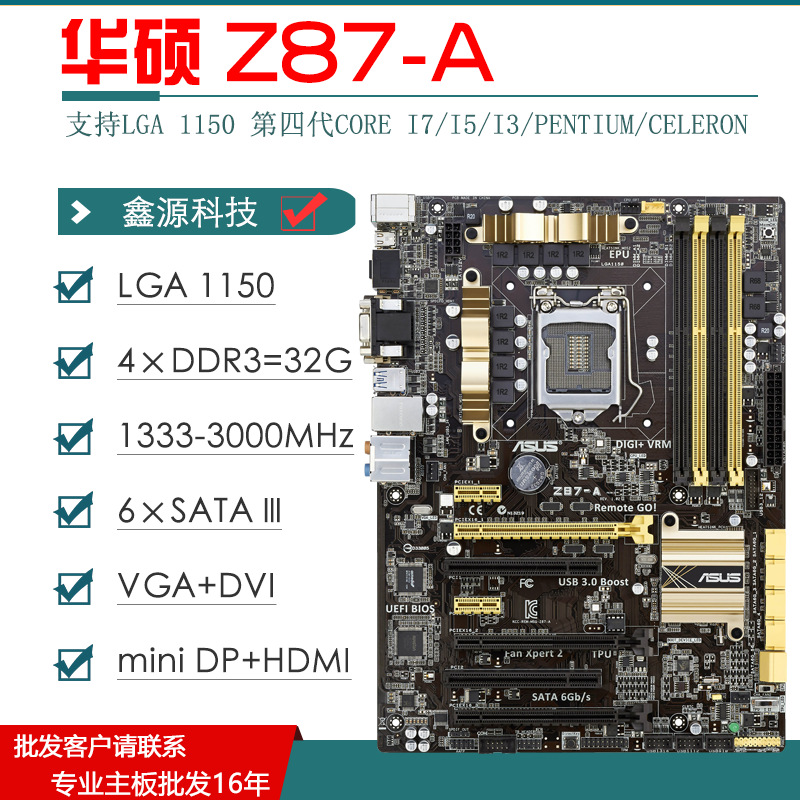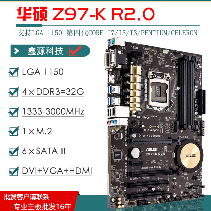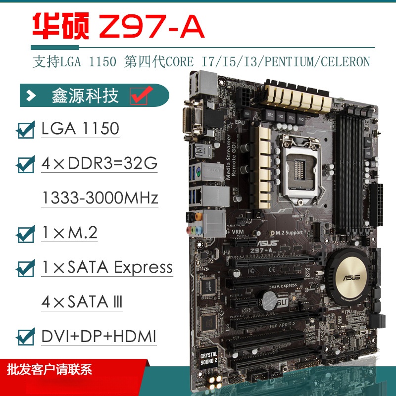 主板型号为:Asus/华硕Z97-A/K玩家国度 ATX 板 1150针,1150主板,DDR3 内存,主板配件只有挡板 没有其他的配件和包装,成色接近9-9.5成新 玩家国度ATX1150针主板 少之又少喜欢的尽快入手哦,主板在不影响二次销售的情况下支持7天无理退款!测试好功能发货!!