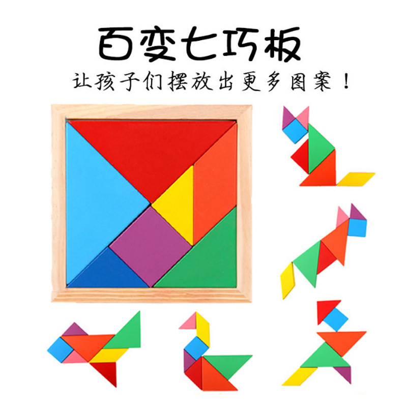 Tangram 나무 색깔 diy 지능 퍼즐 Tangram 빌딩 블록 장난감 어린이 교육 장난감 도매스토어 가기