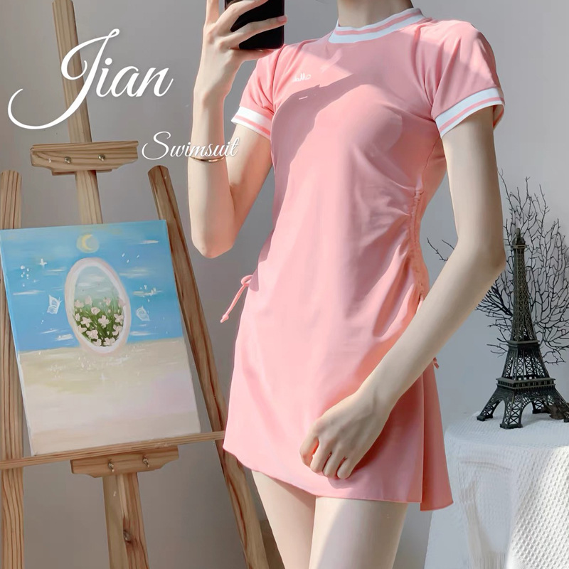 학생용 핑크 원피스 수영복 여성용 스커트 보수적 인 배를 덮는 작은 가슴 수집 소녀의 살을 덮는 슬리밍 수영복 온천스토어 가기