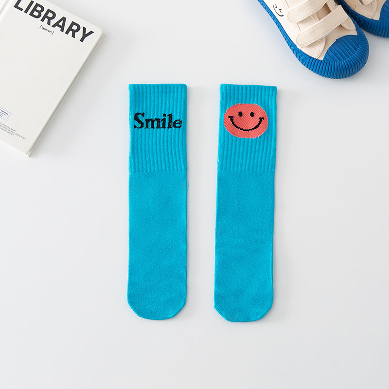 2022년 신상 아동용 양말, 면 소재 중간 길이의 웃는 얼굴과 글자 무늬가 있는 스트레이트 디자인, 남아 여아 학생용 종아리 길이 양말, 만화 캐릭터스토어 가기