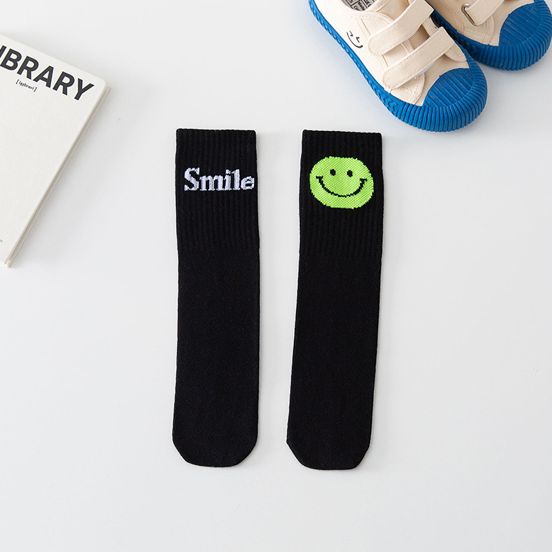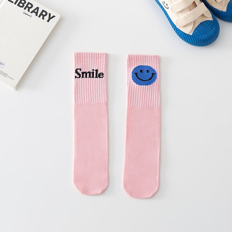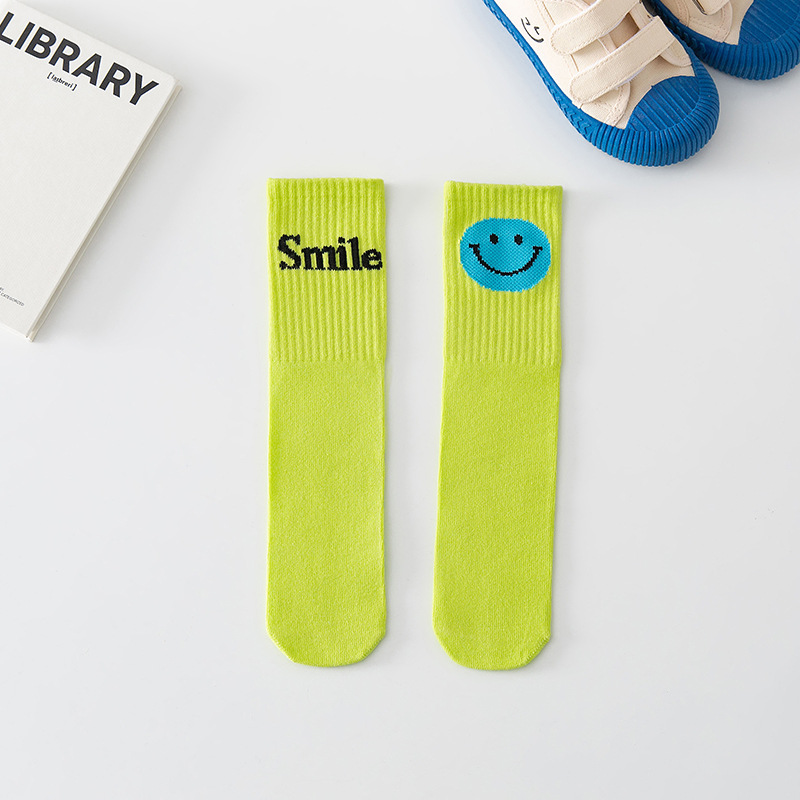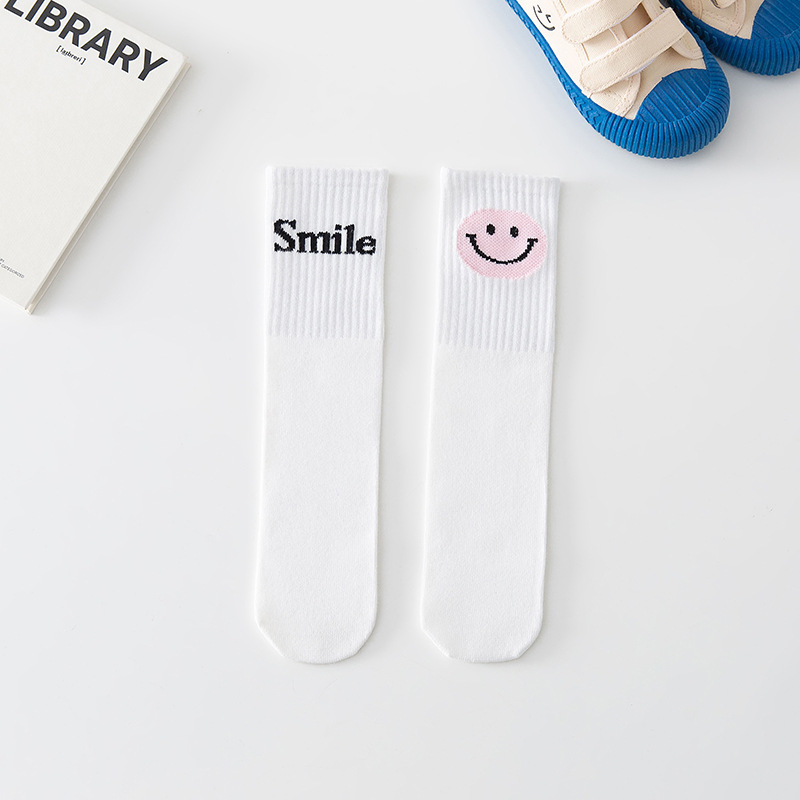 2022년 신상 아동용 양말, 면 소재 중간 길이의 웃는 얼굴과 글자 무늬가 있는 스트레이트 디자인, 남아 여아 학생용 종아리 길이 양말, 만화 캐릭터